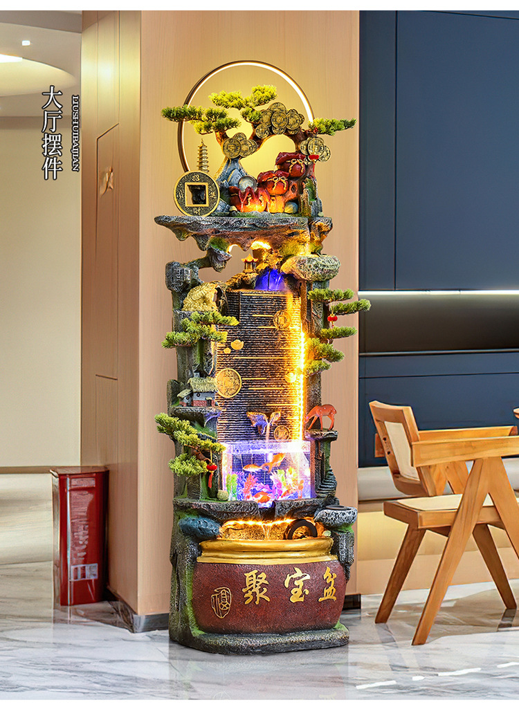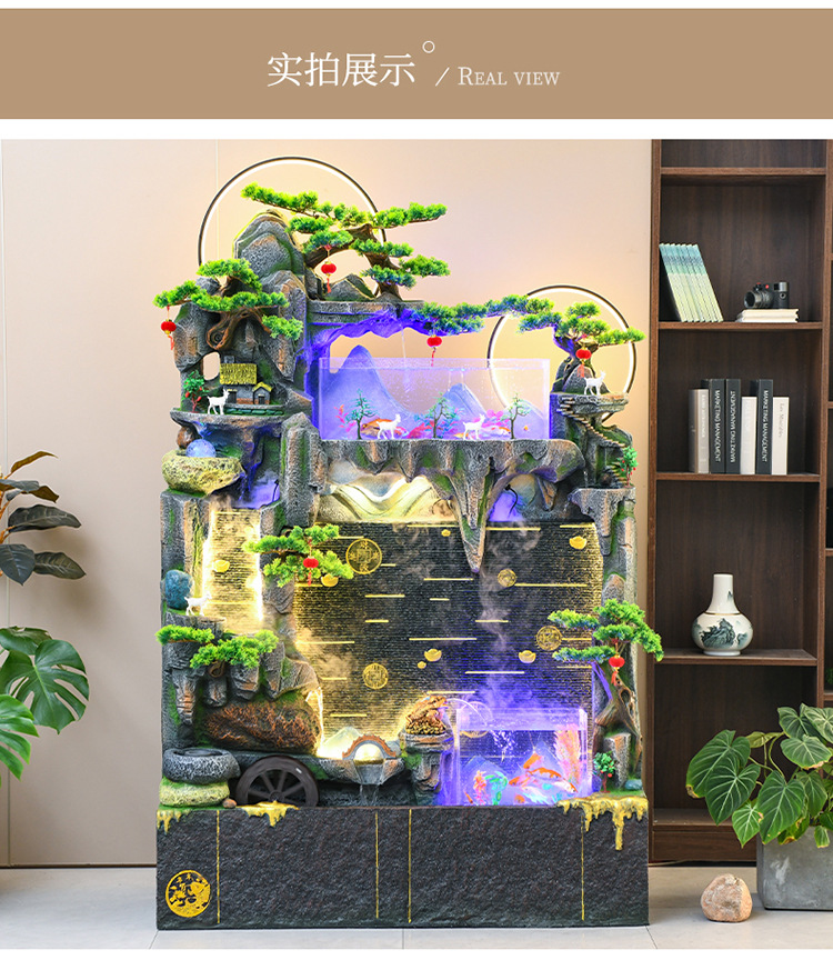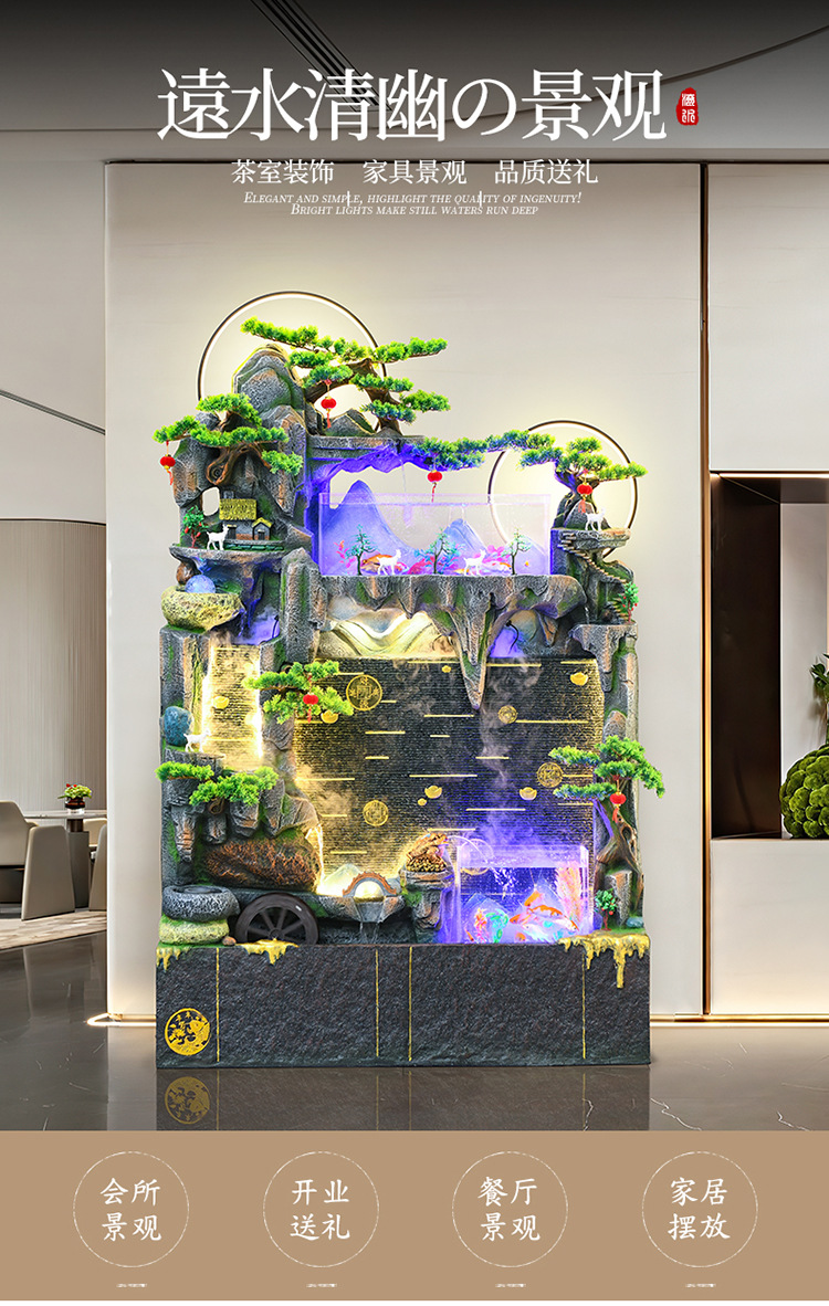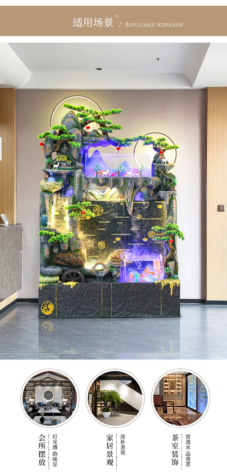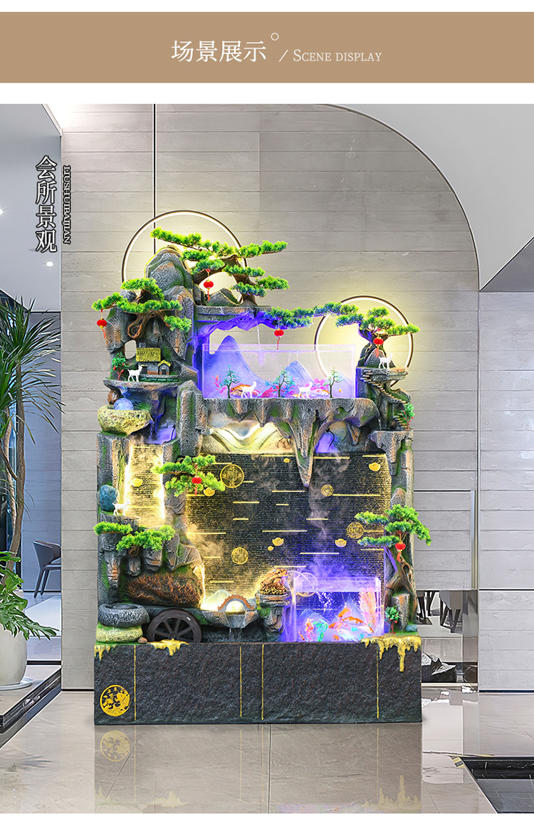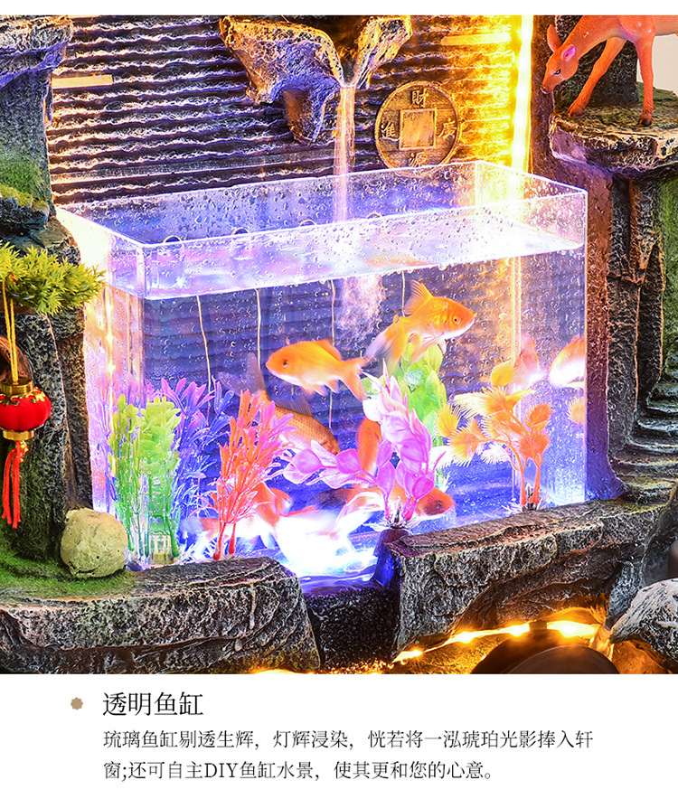 바위 흐르는 물 분수 장식품 순환 물 커튼 벽 현관 스크린 거실 사무실 장식 개방 행운의 물고기 탱크