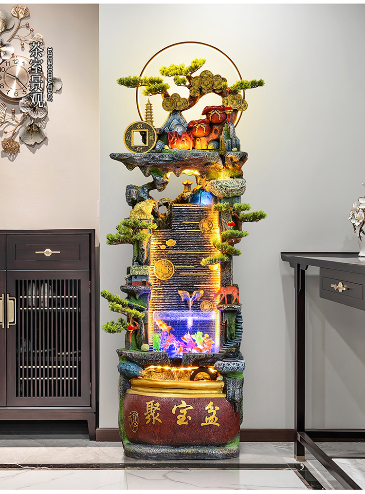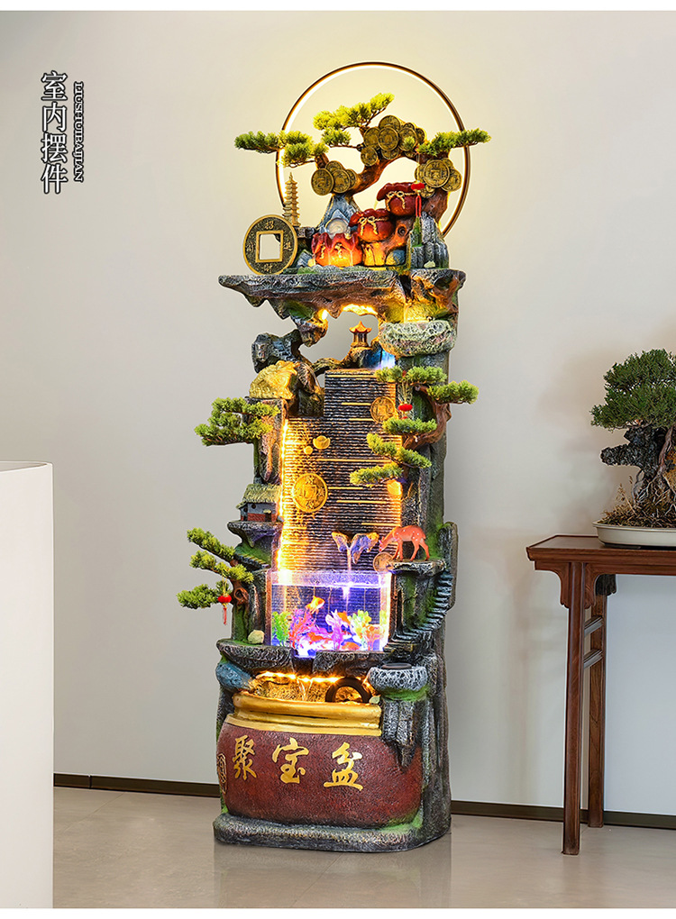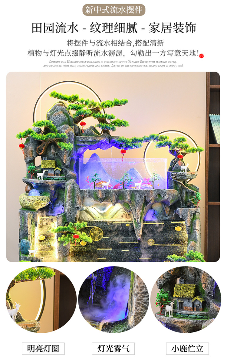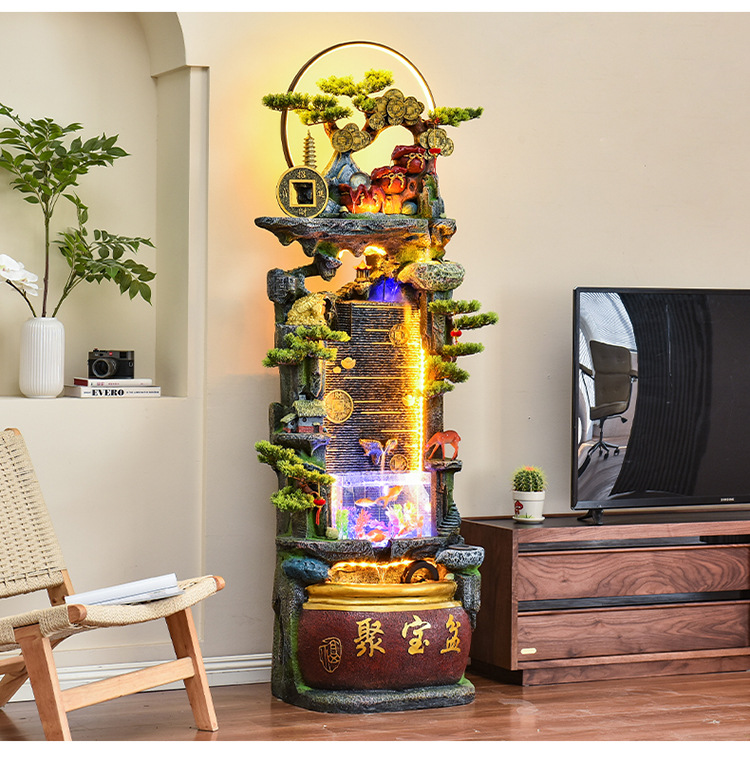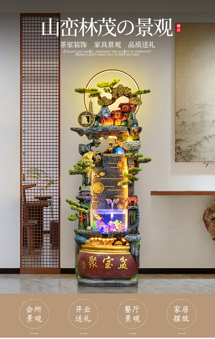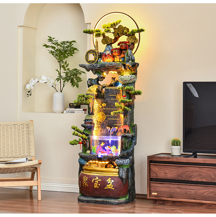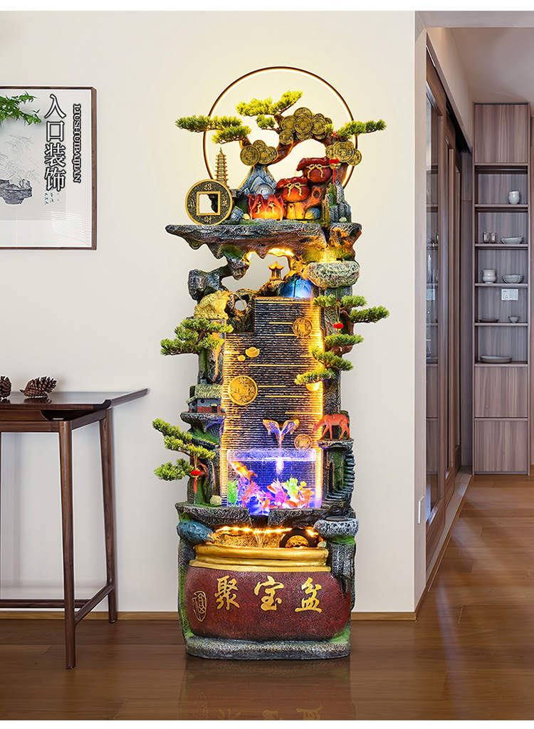 바위 흐르는 물 분수 장식품 순환 물 커튼 벽 현관 스크린 거실 사무실 장식 개방 행운의 물고기 탱크