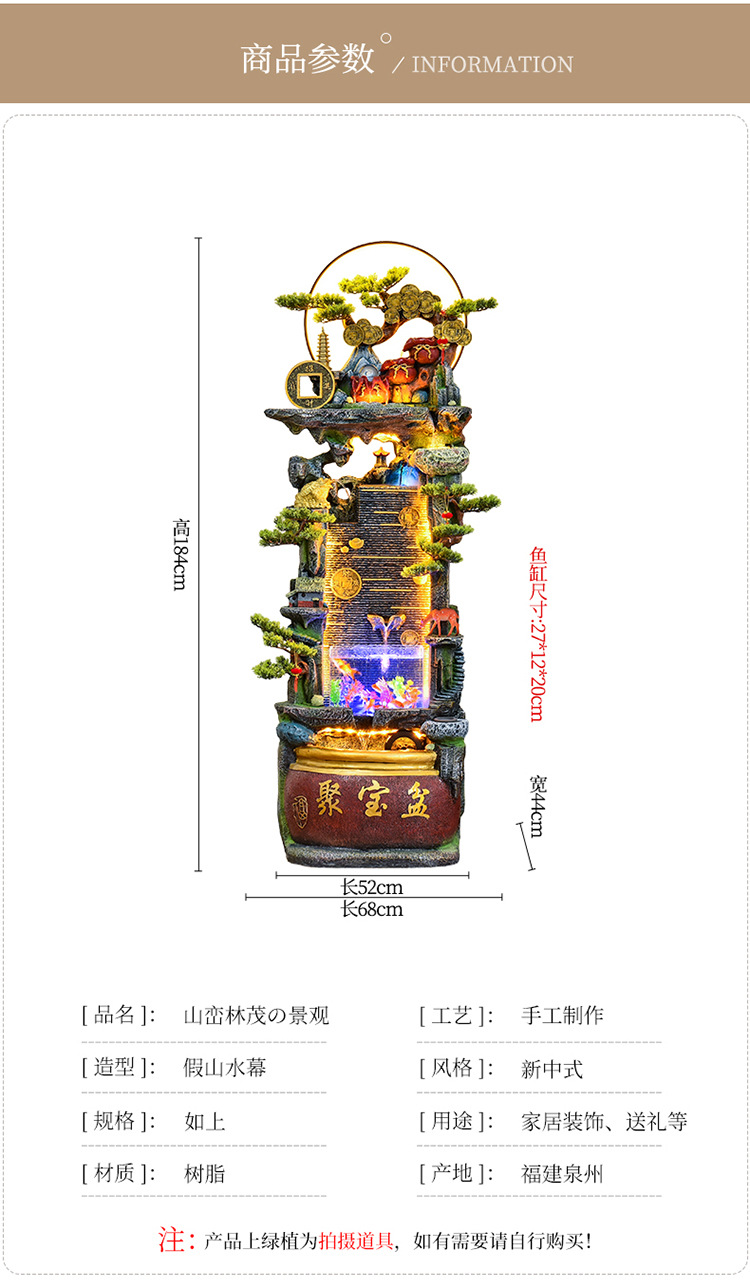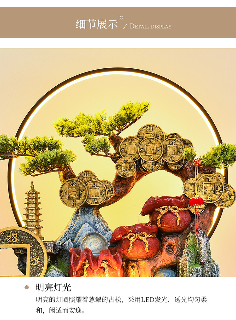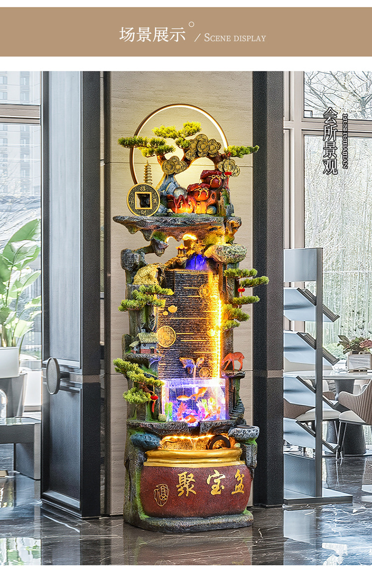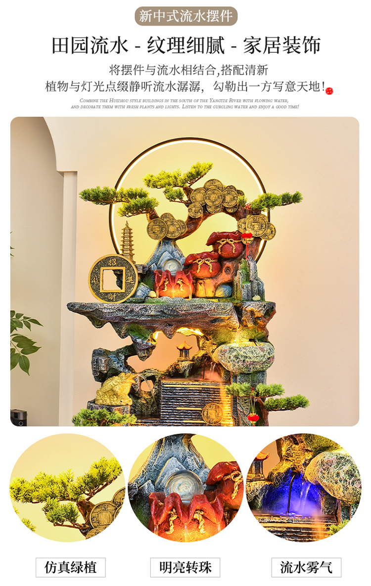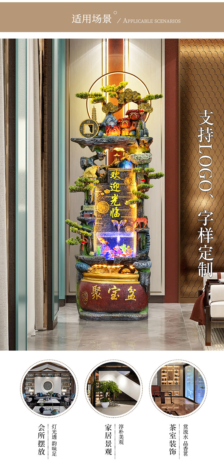 바위 흐르는 물 분수 장식품 순환 물 커튼 벽 현관 스크린 거실 사무실 장식 개방 행운의 물고기 탱크