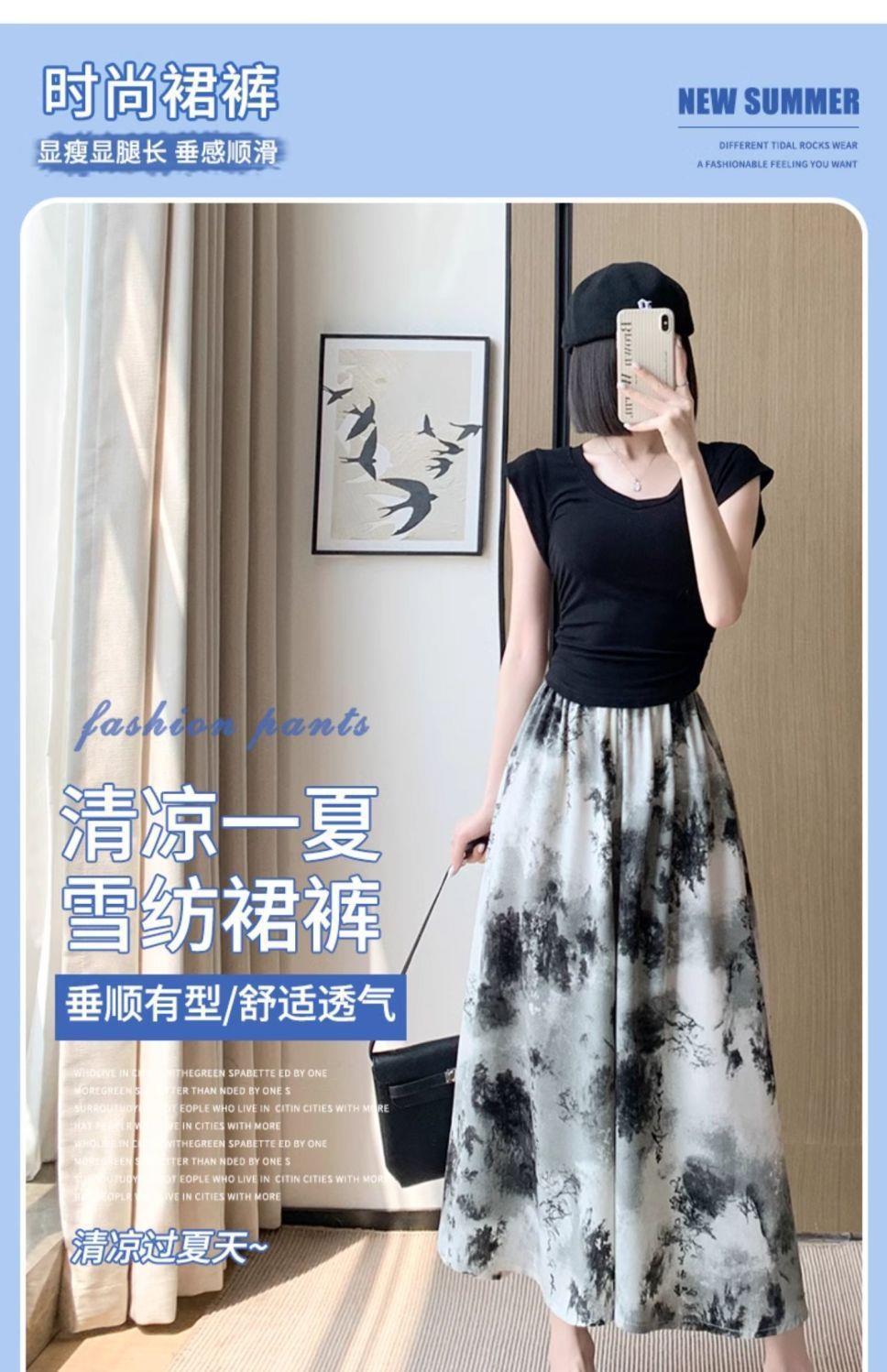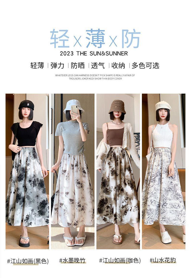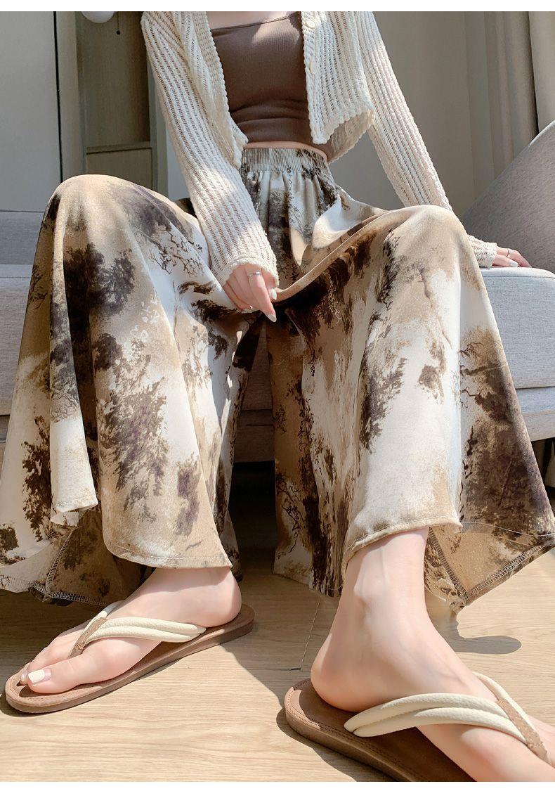 중국 잉크 그림 중국 스타일 넓은 다리 바지 여성 2025 여름 느슨한 얇은 높은 허리 더미 아이스 실크 문화스토어 가기