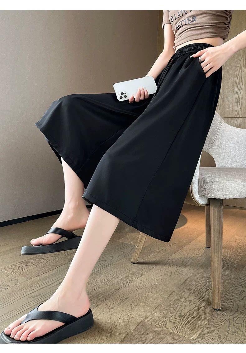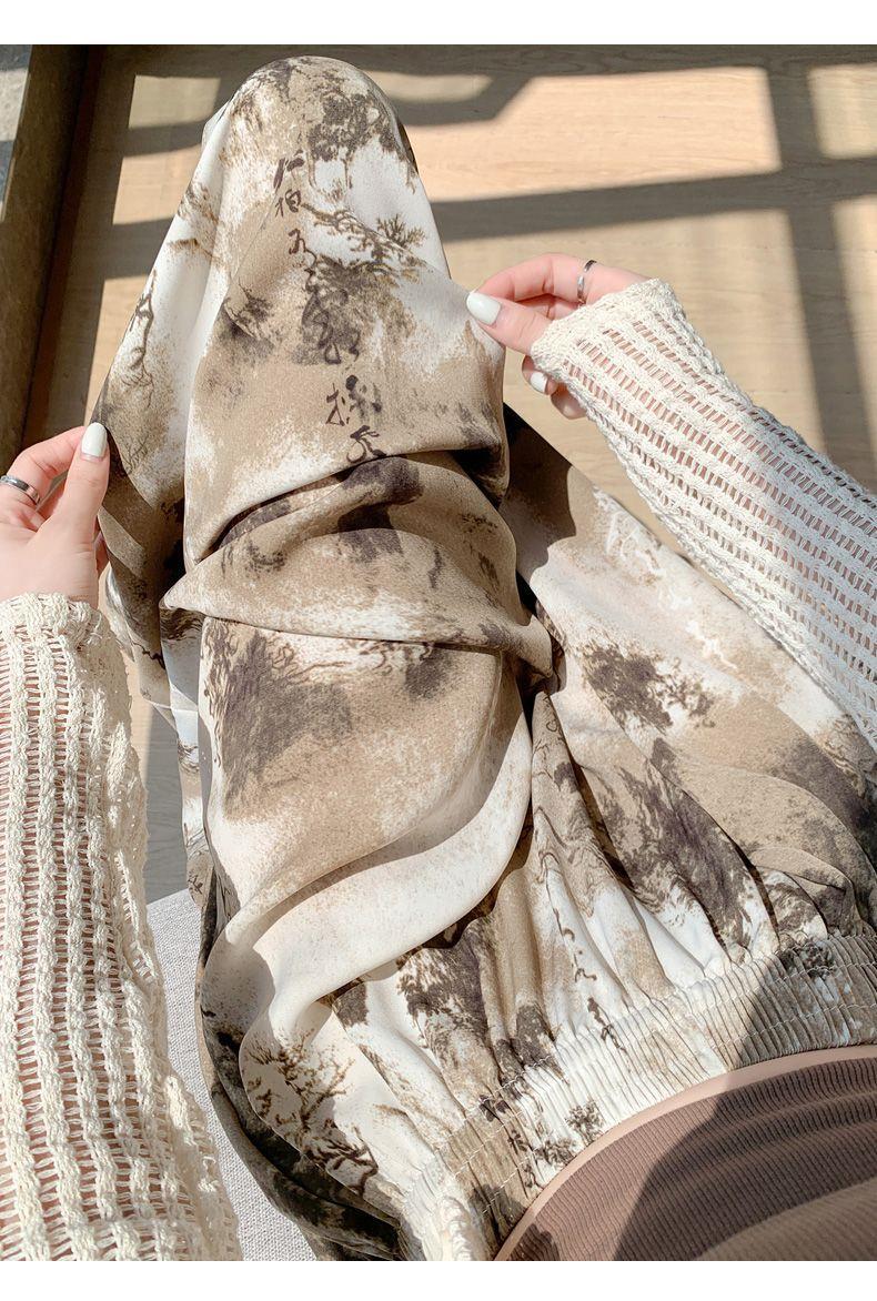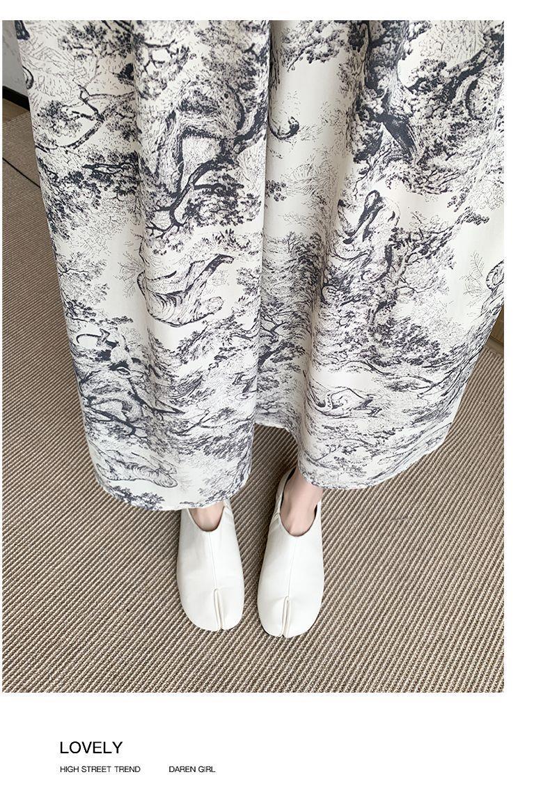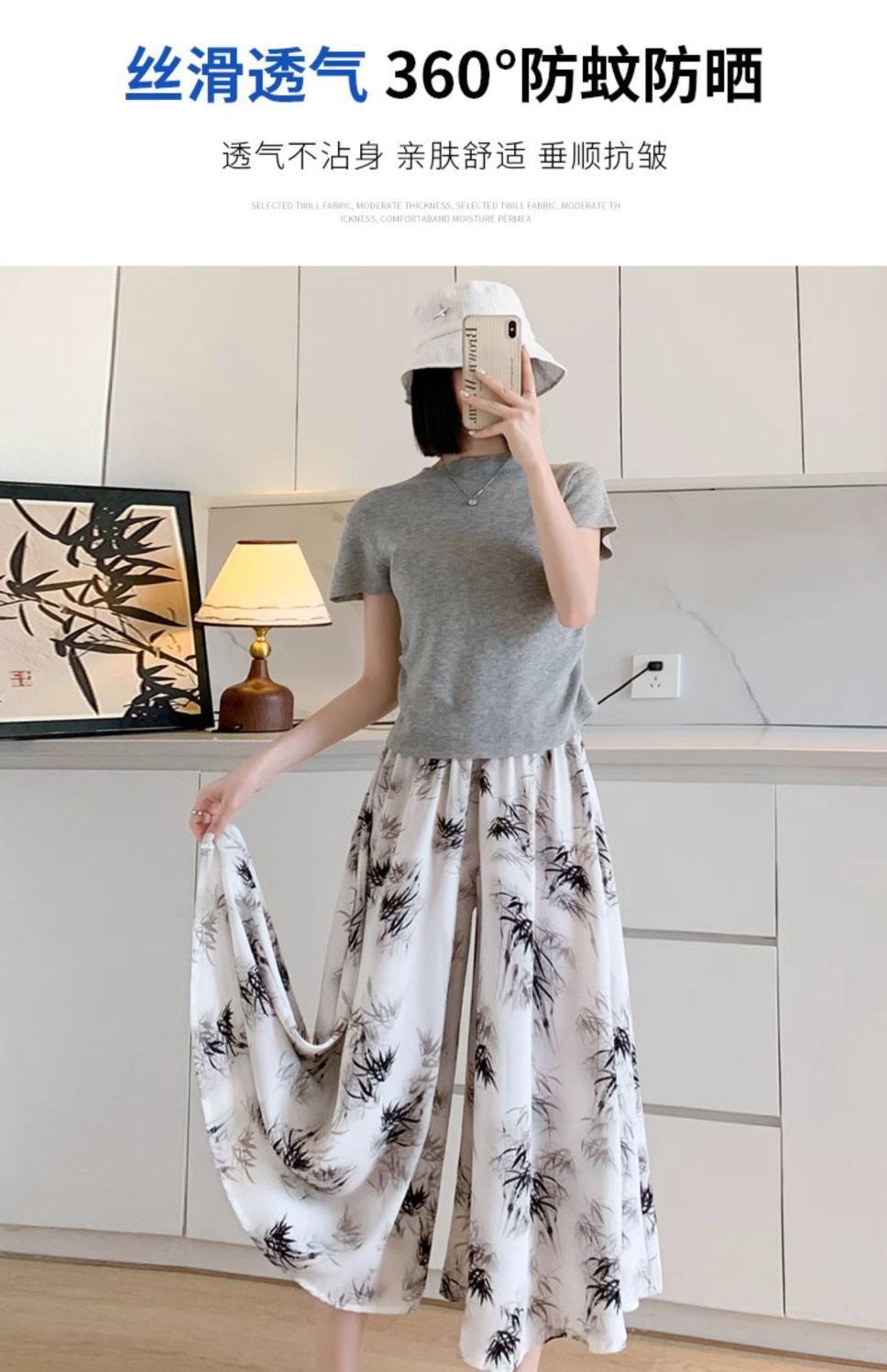 중국 잉크 그림 중국 스타일 넓은 다리 바지 여성 2025 여름 느슨한 얇은 높은 허리 더미 아이스 실크 문화스토어 가기