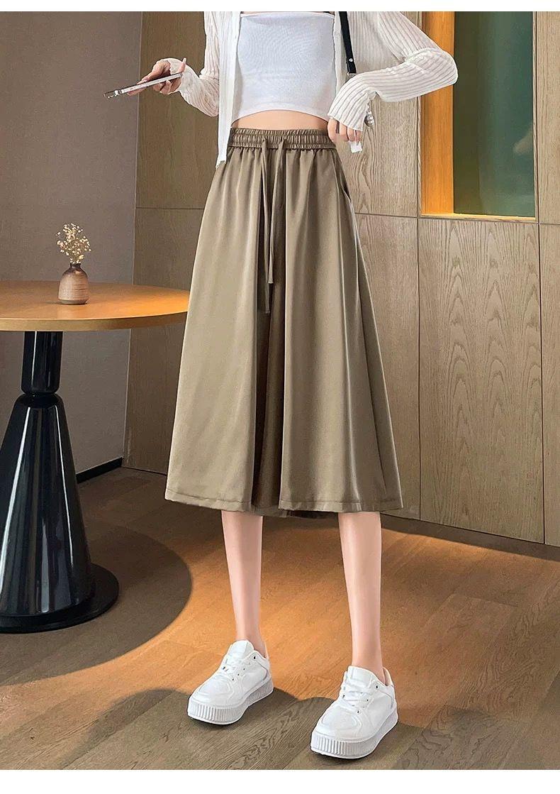 중국 잉크 그림 중국 스타일 넓은 다리 바지 여성 2025 여름 느슨한 얇은 높은 허리 더미 아이스 실크 문화