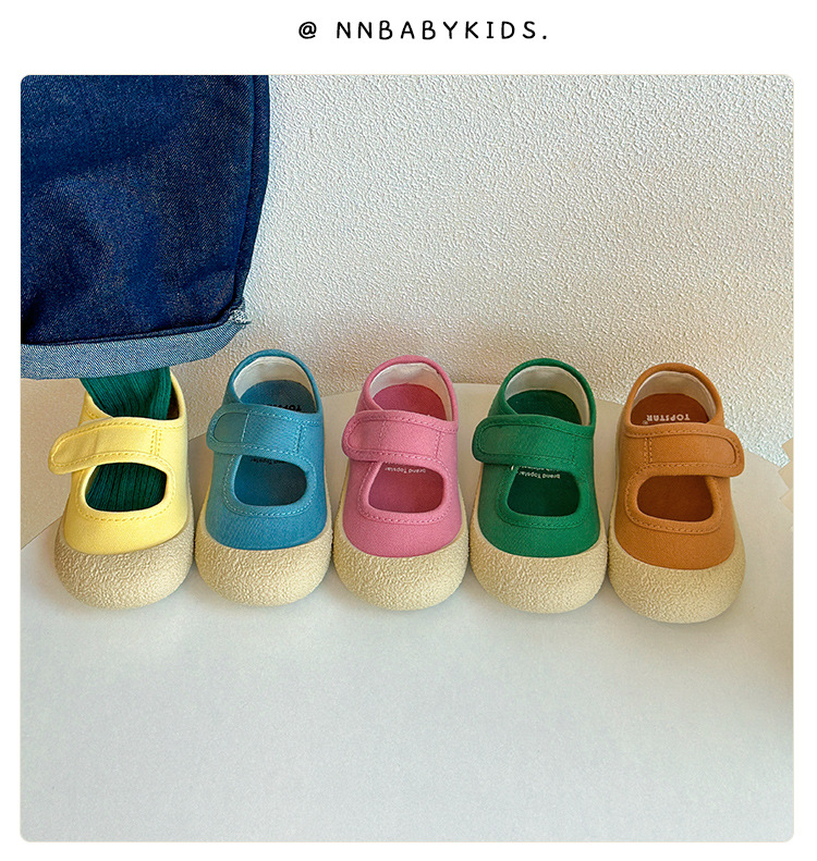 정품 어린이 캔버스 신발 봄과 가을 새로운 소년과 소녀 얕은 신발 부드러운 바닥 캔디 컬러 아기 실내 천 신발