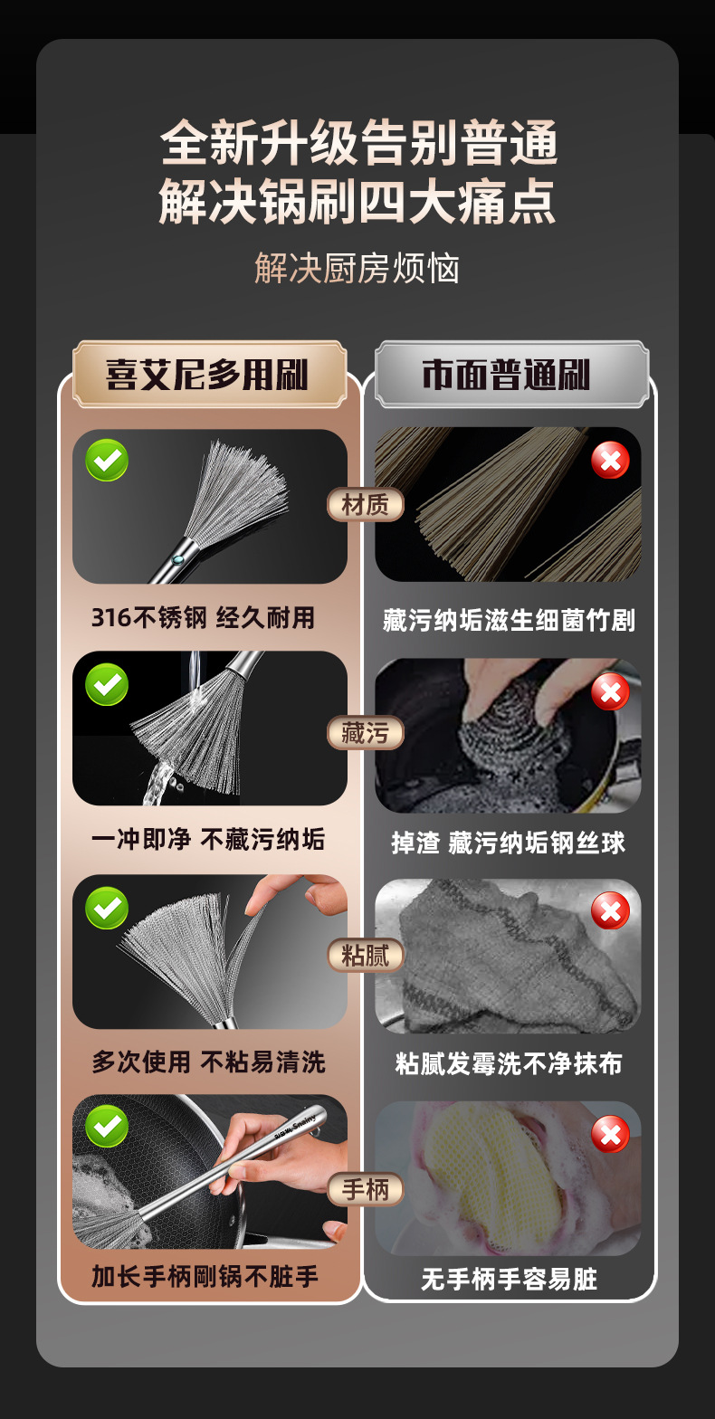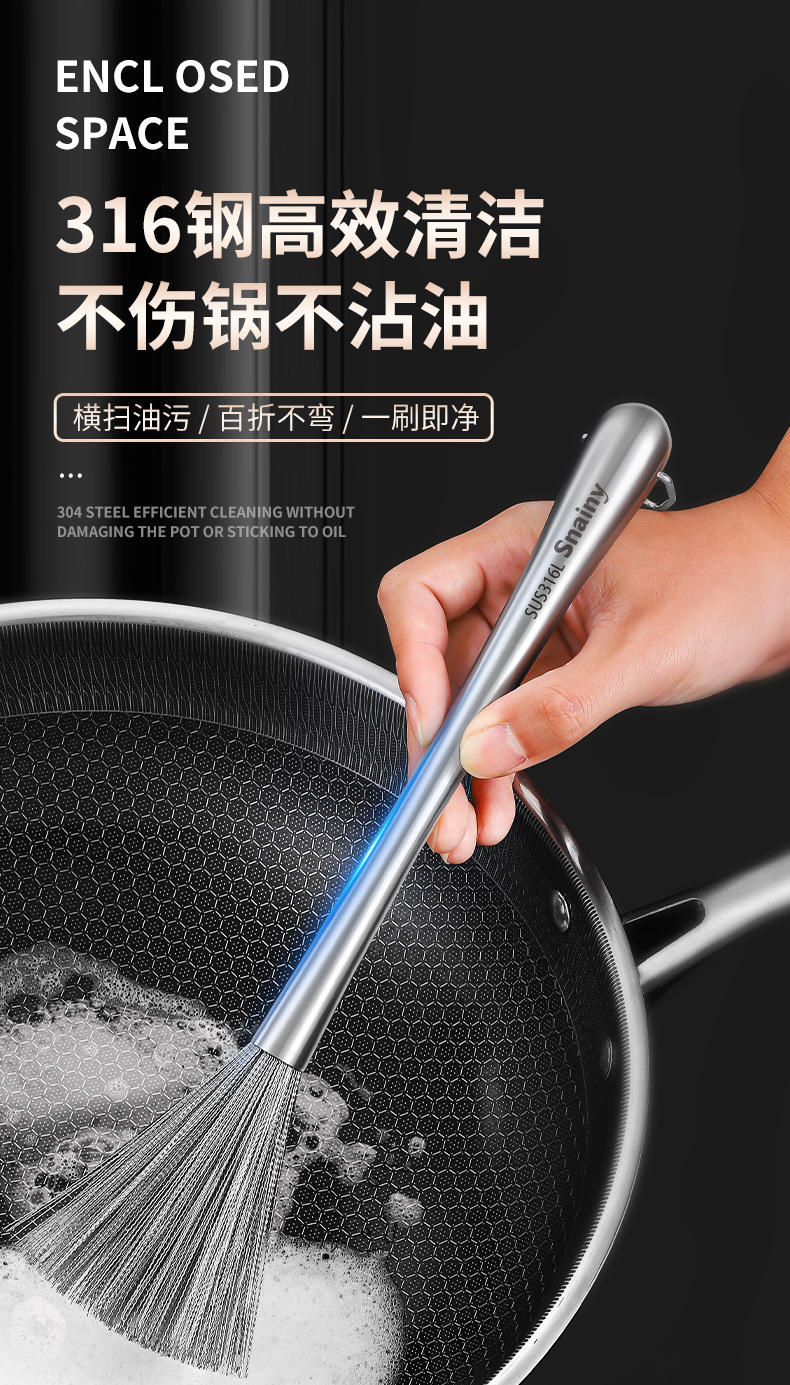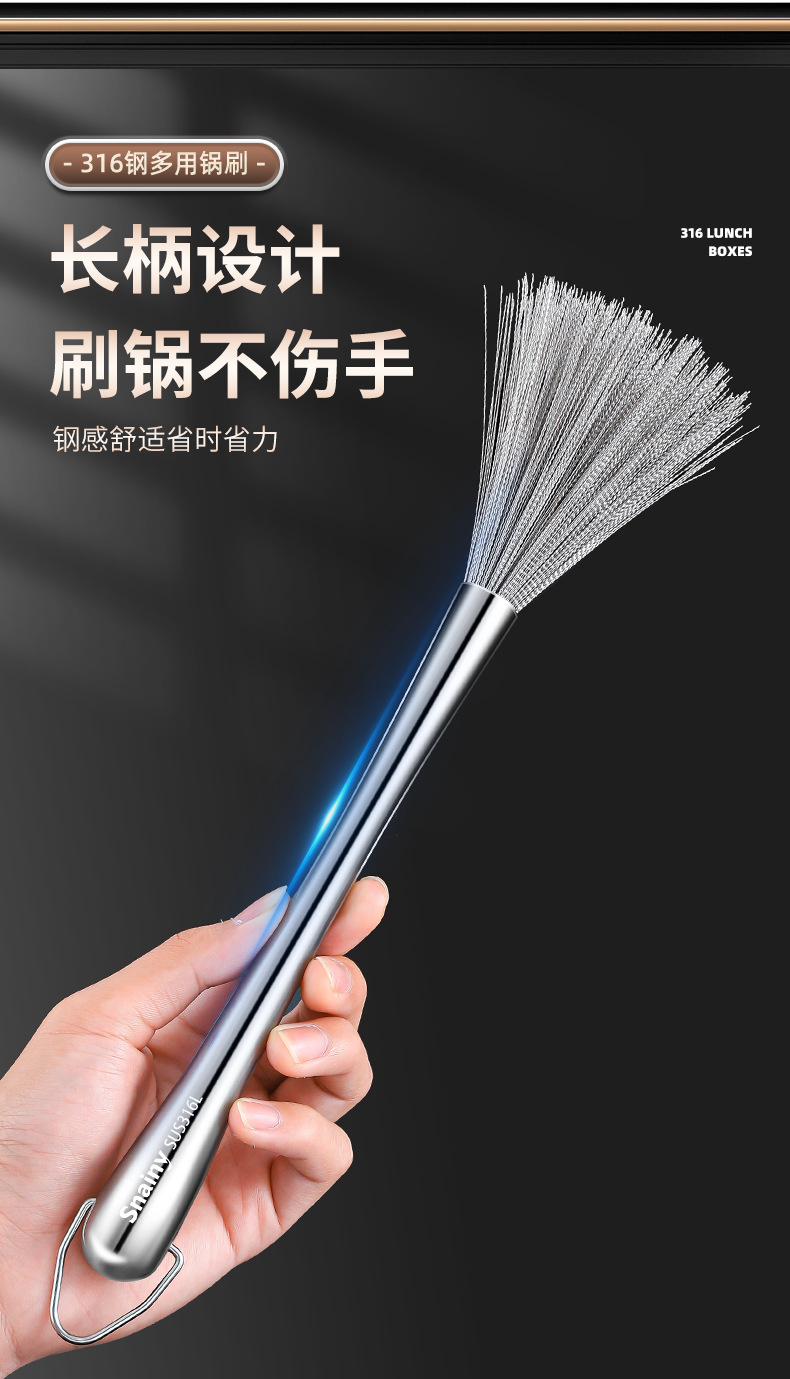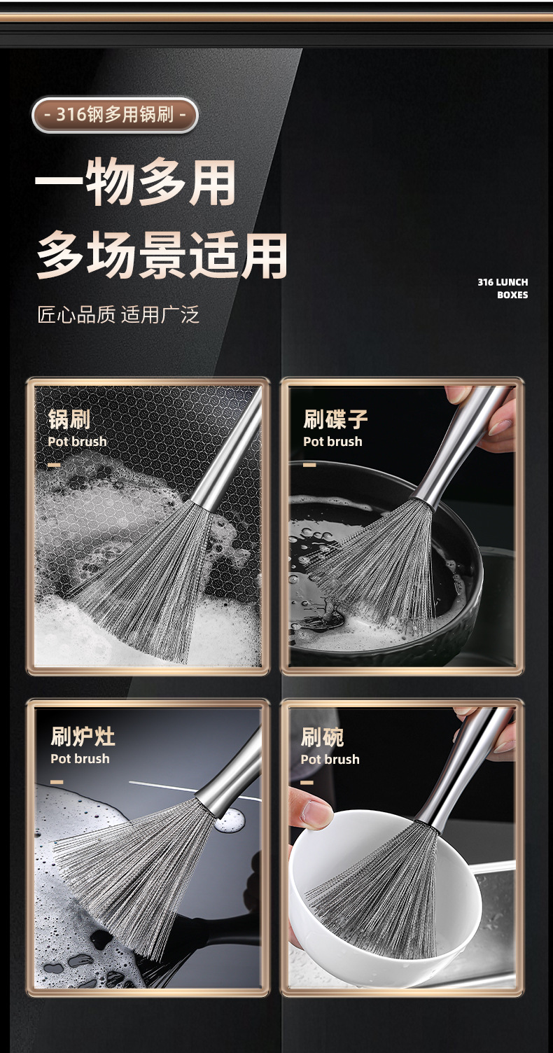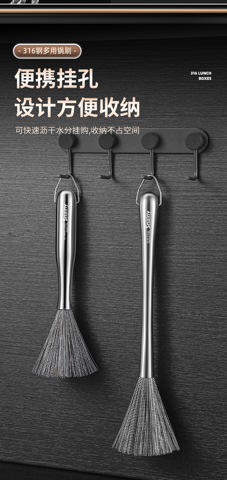 스테인레스 스틸 브러시 포트 브러시 포트 브러시 가정용 긴 스틸 와이어 청소 주방 부상 냄비 브러시 그릇 먼지 제거 열 없음