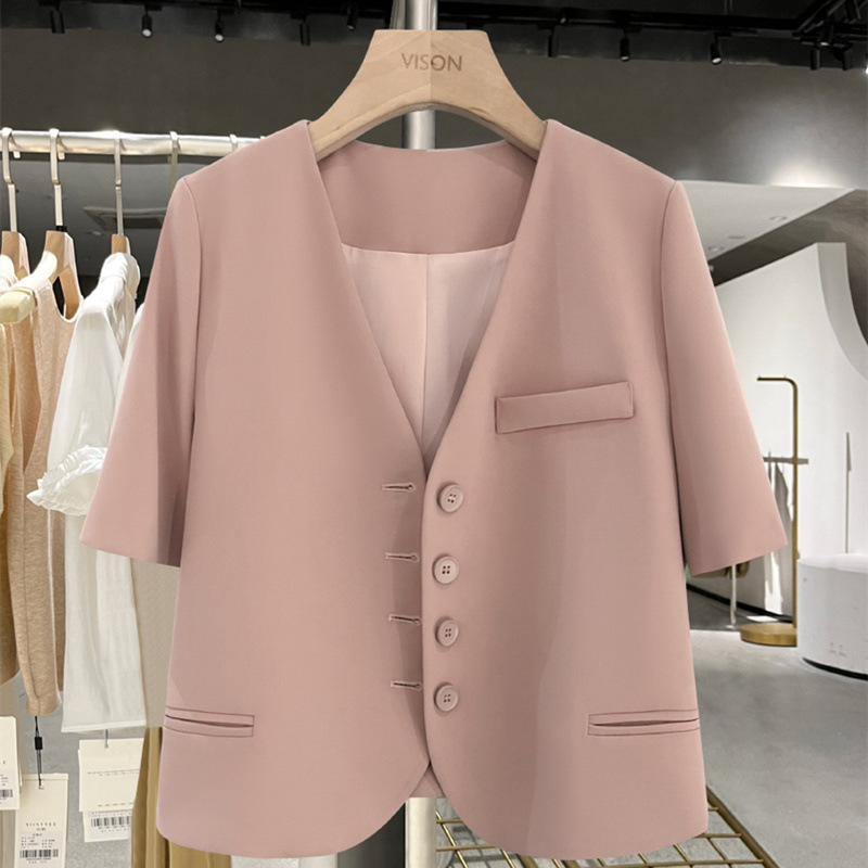 아이보리 반팔 작은 세트 재킷 여성 2025 년 여름 새로운 인터넷 인기 통근 작은 짧은 세트