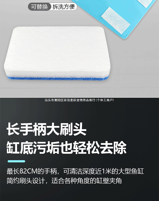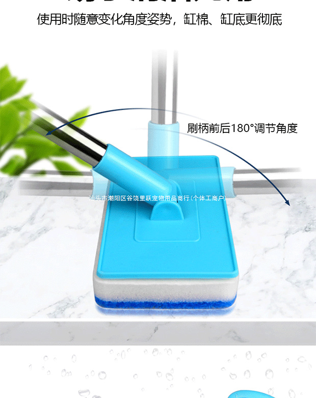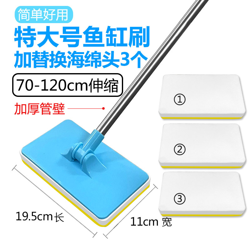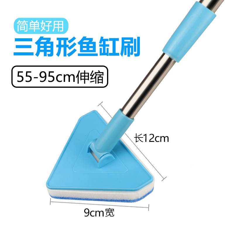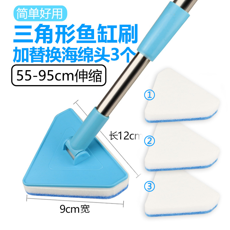 • 삼각형 수조 브러시 55-95cm [접이식] + 애완동물용 교체 스폰지 헤드 3개