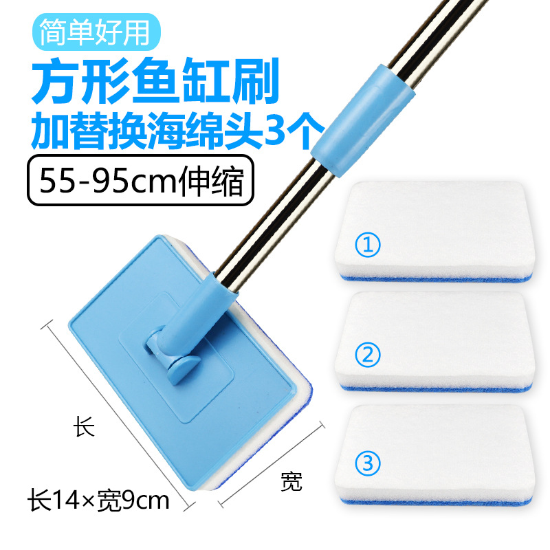 • 사각 수조 브러시 55-95cm [접이식] + 애완동물용 교체용 스폰지 헤드 3개