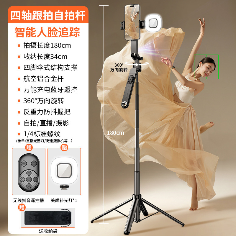 • 1.8m 블랙 + 라이브 방송 밝은 근육 조명 [AI 지능형 얼굴 추적◆흔들림 방지 4축】무료 충전 Douyin 리모컨