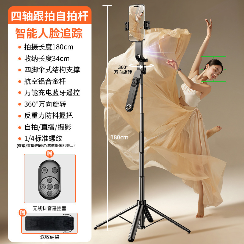 • 1.8m 검정색 [AI 지능형 얼굴 추적★흔들림 방지 4축】무료 충전 Douyin 리모컨