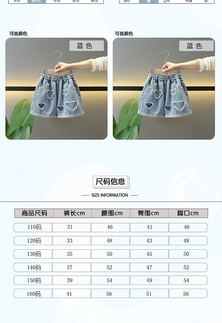 소녀 데님 반바지 여름 얇은 아동복 핫 바지 어린이 외투 소녀 트리플 바지 대형 어린이 부드러운 청바지
