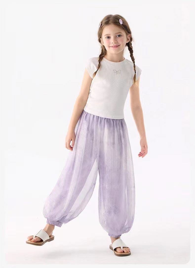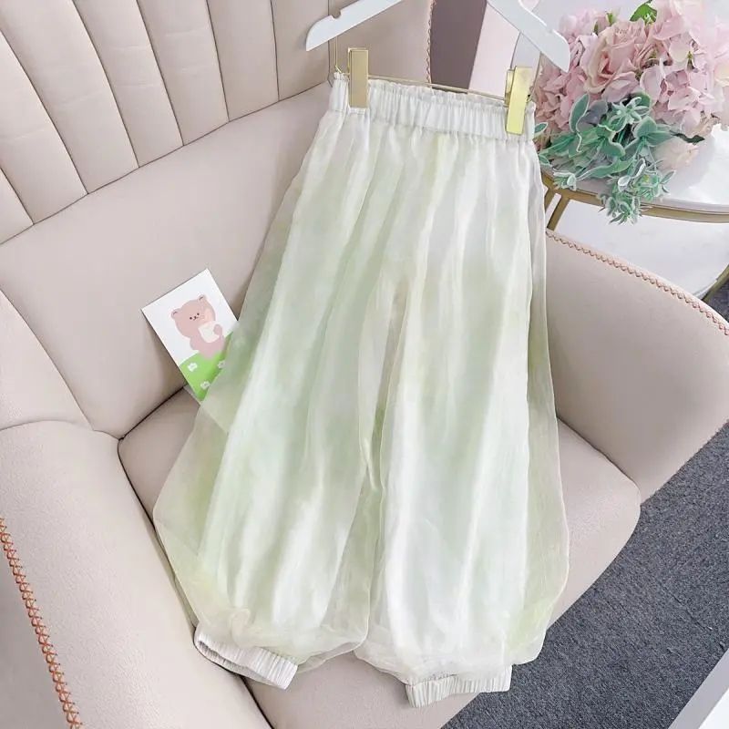소녀 시폰 바지 여름 새로운 도착 바지 얇은 블루머 넓은 다리 바지 어린이 중형 및 대형 어린이 모기 방지 바지