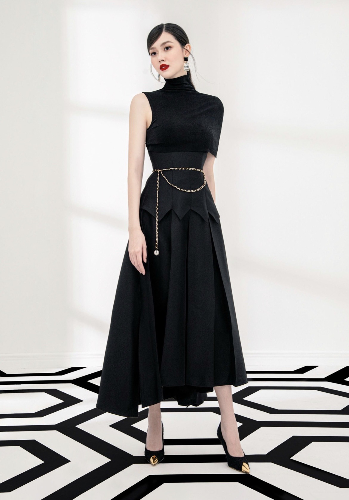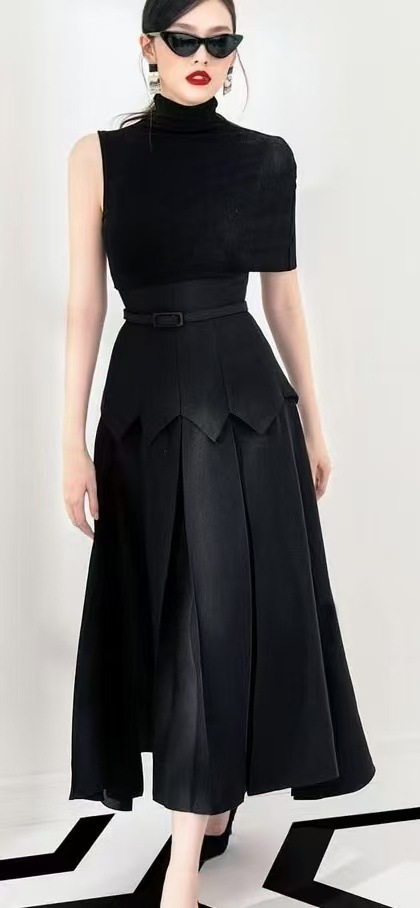 재고 베트남 틈새 디자인 센스 봄과 여름 니트 가짜 투피스 원피스 사교계 스타일 우아한 불규칙한 긴 원피스스토어 가기