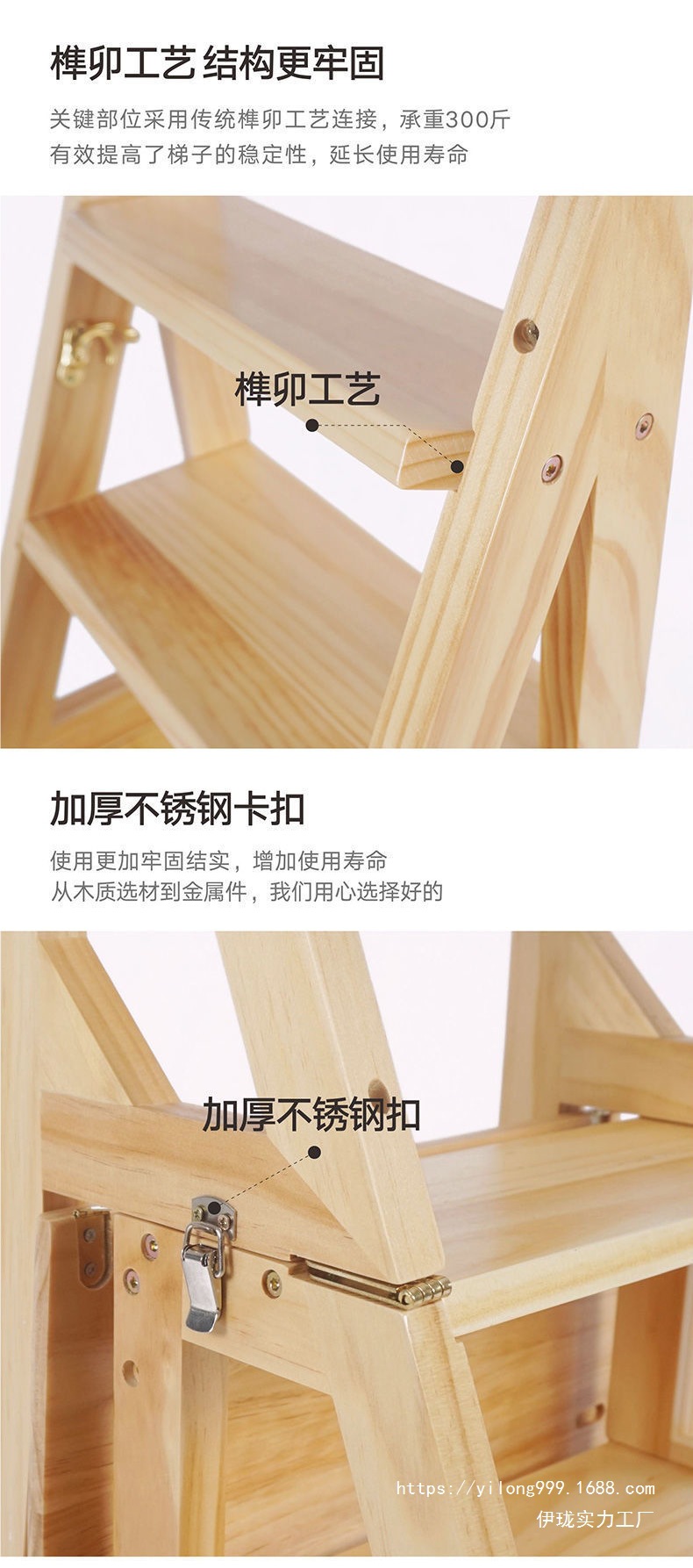 단단한 나무 가정용 다기능 사다리 의자 접이식 사다리 의자 이중 목적 사다리 의자 실내 등산 사다리 4단 헤링본 사다리스토어 가기