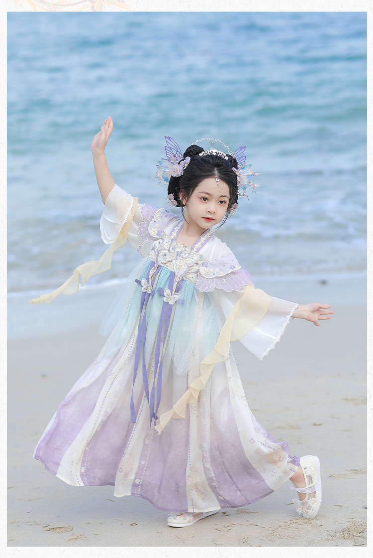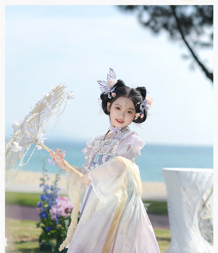 봄과 가을 새로운 Hanfu 어린이 긴팔 고대 의상 개선 된 중국 스타일 당나라 정장 어린 소녀 슈퍼 요정 의상 드레스 봄