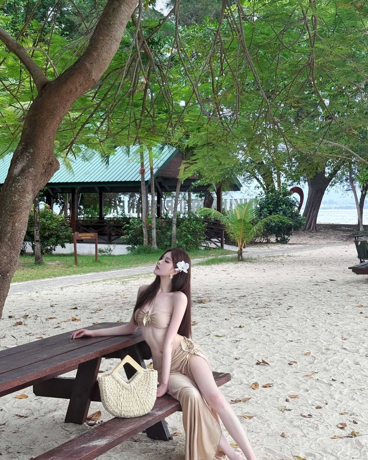 2025년 새로운 스타일의 아름다운 스플릿 비키니 3피스 수영복 여성 작은 가슴 휴가 온천 순수한 욕망 수영복스토어 가기