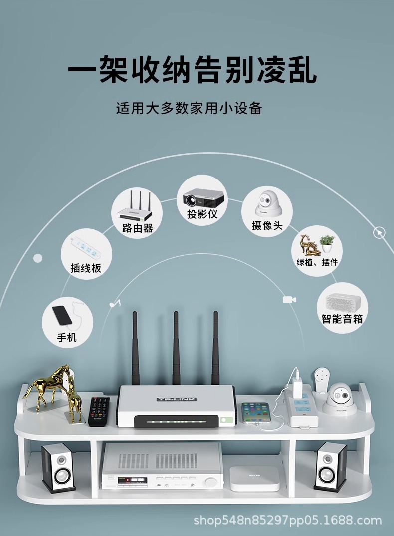거실 TV 벽 셋톱 박스 선반 라우터 보관함 벽걸이 장식 파티션 침실에 구멍을 뚫을 필요가 없습니다.스토어 가기