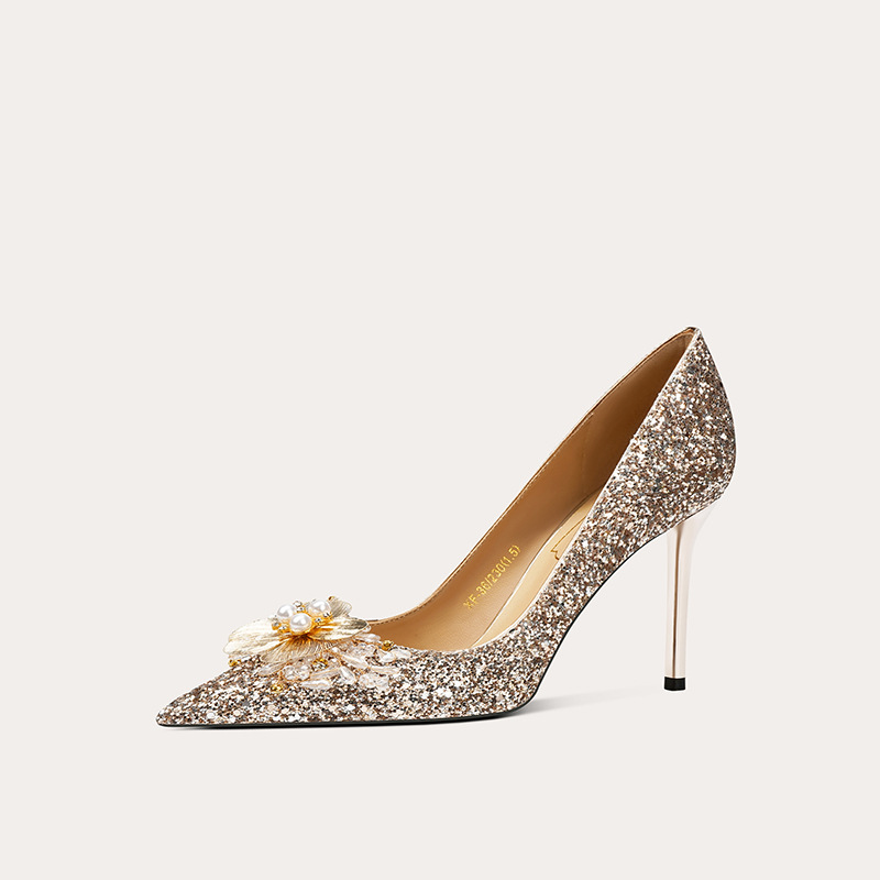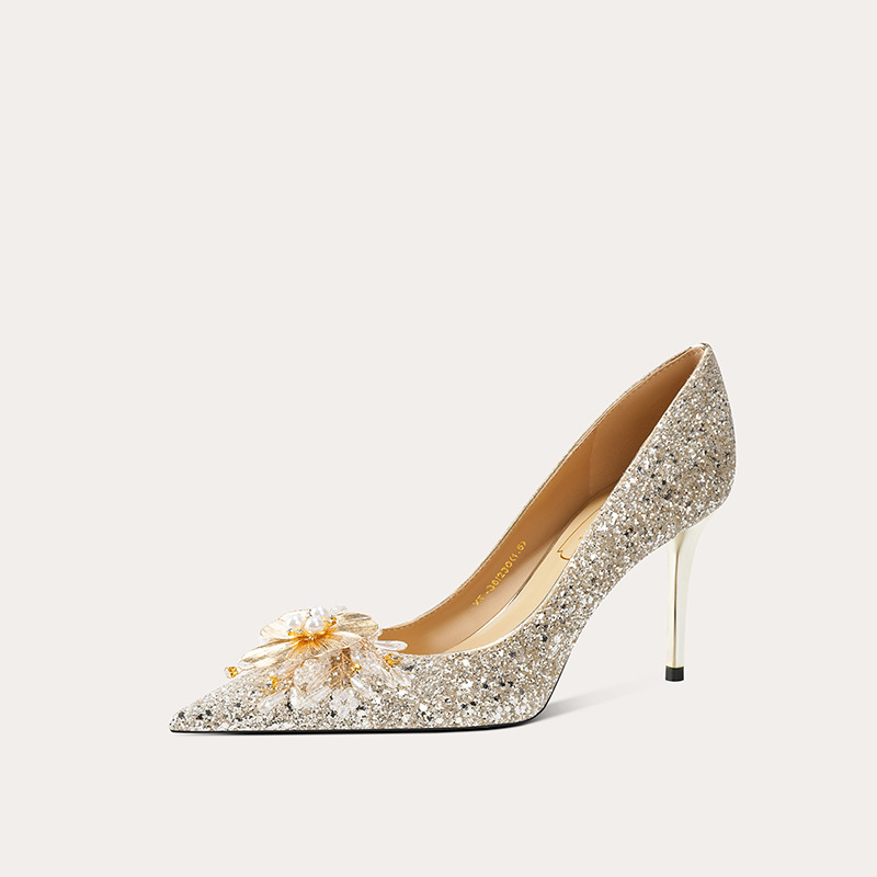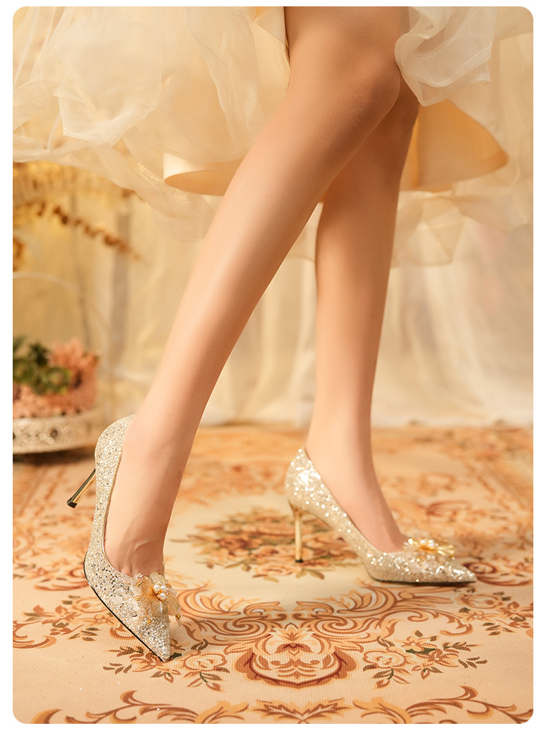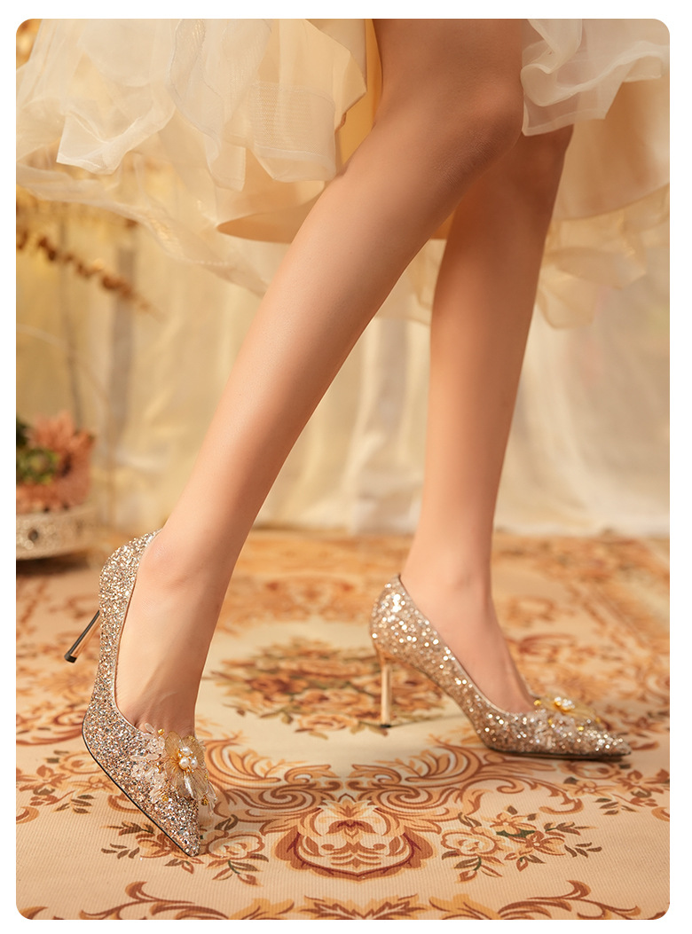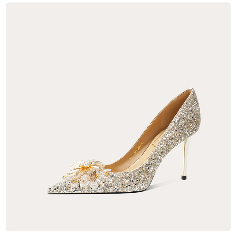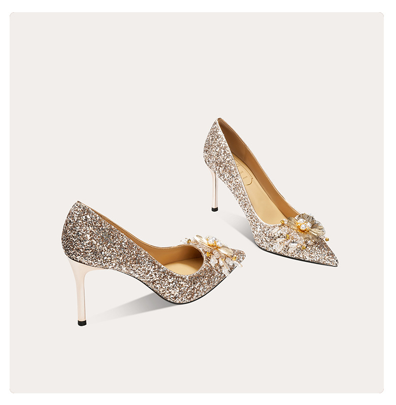 708-B26 패션 크리스탈 중공업 활 하이힐 여성의 2025 새로운 아름다운 스퀸 양가죽 신부 신발