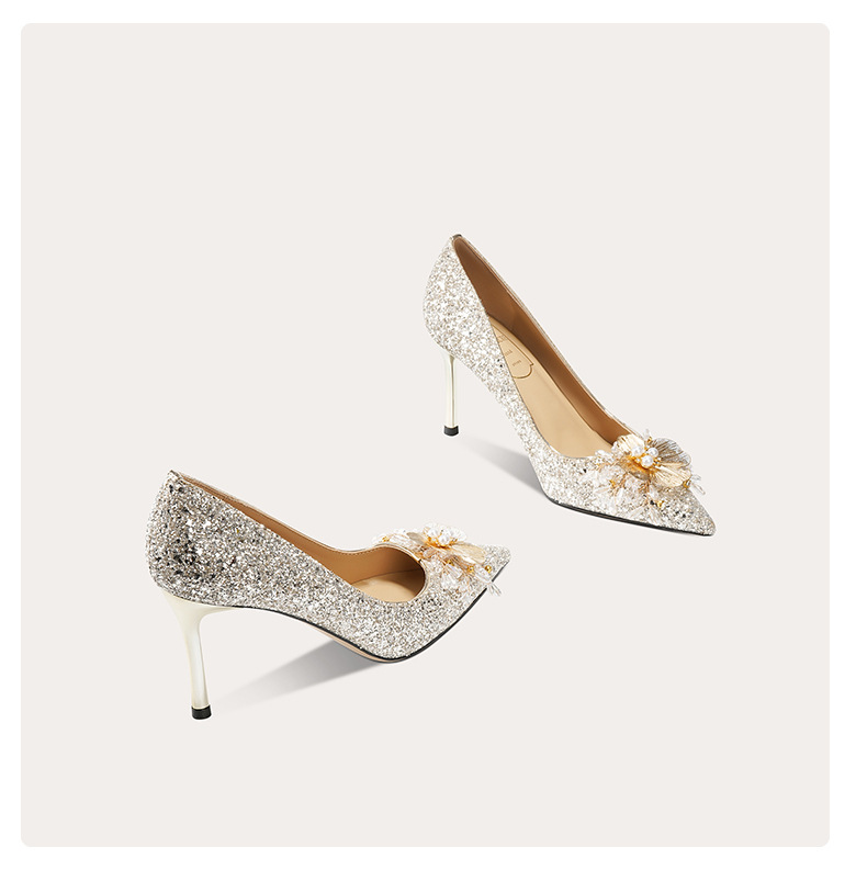 708-B26 패션 크리스탈 중공업 활 하이힐 여성의 2025 새로운 아름다운 스퀸 양가죽 신부 신발스토어 가기