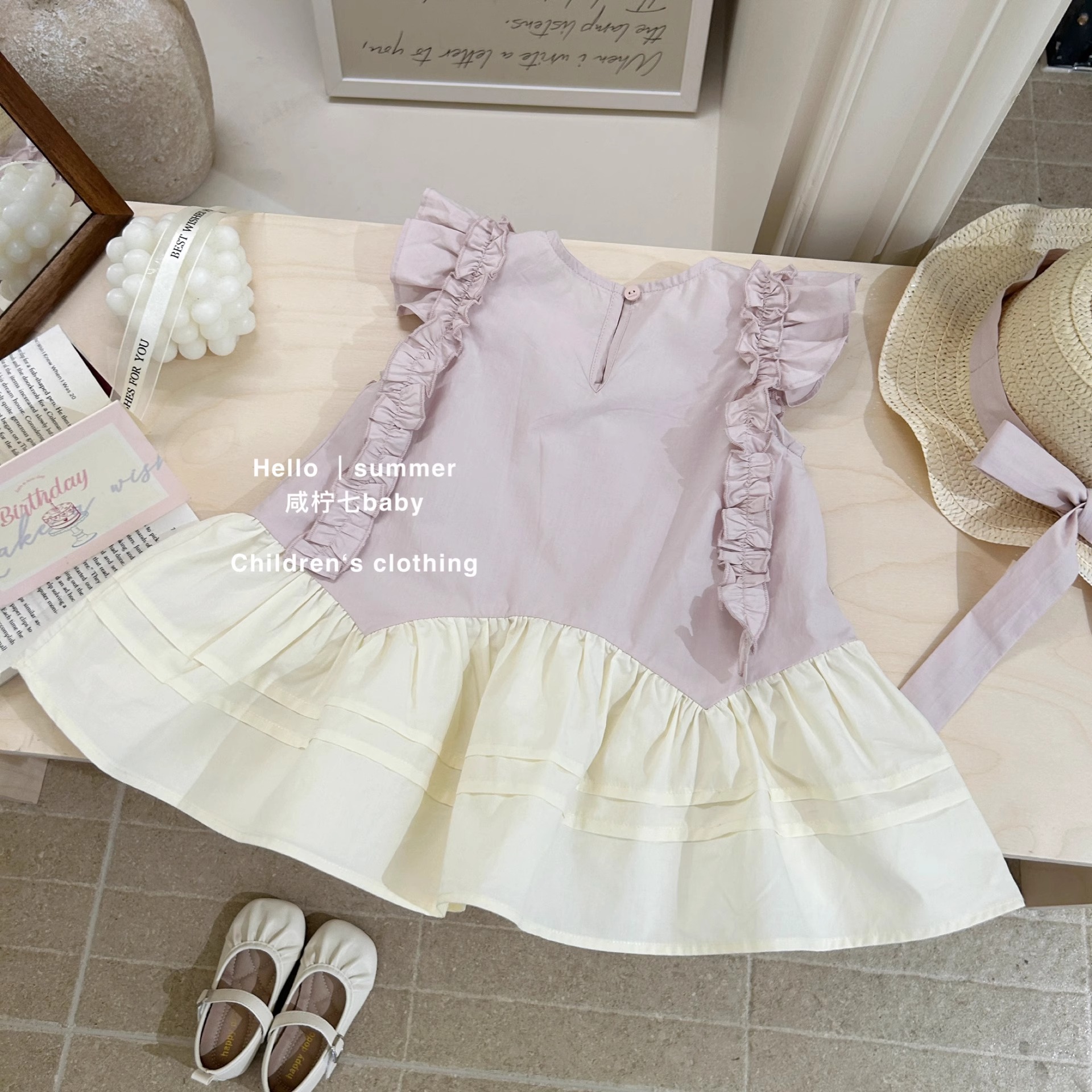 2025 한국식 소녀 원피스 여름 새 스타일 레이스 공주 원피스 면 얇은 달콤한 여름 조끼 원피스