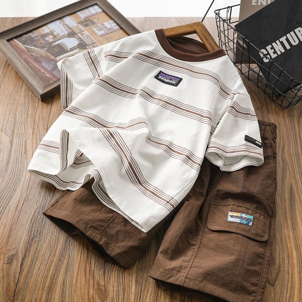 남학생 여름 착용 세트 큰 어린이 줄무늬 반팔 8 남학생 캐주얼 여름 티셔츠 툴링 반바지 투피스 패셔너블 세트스토어 가기