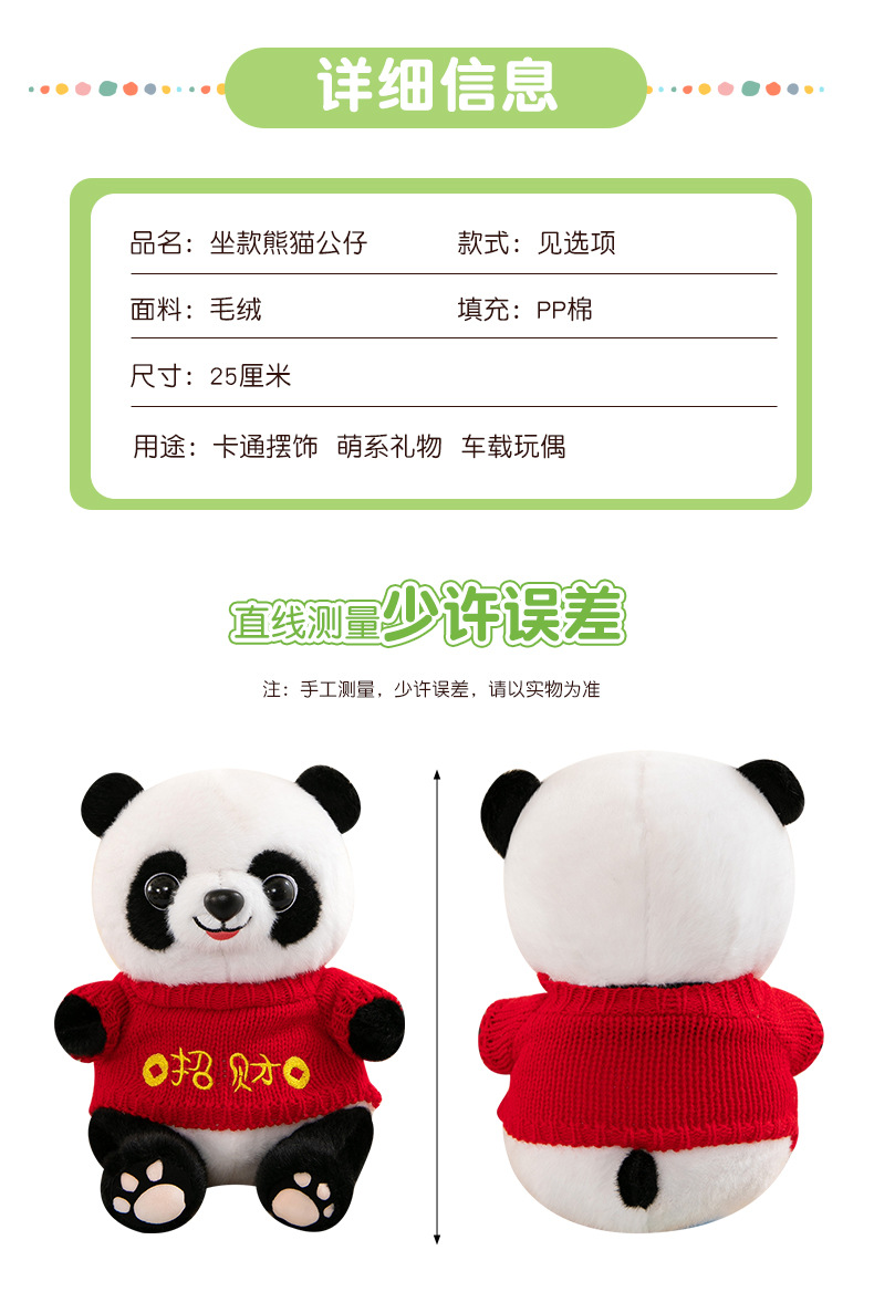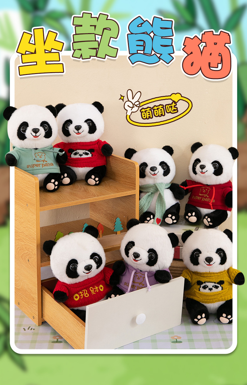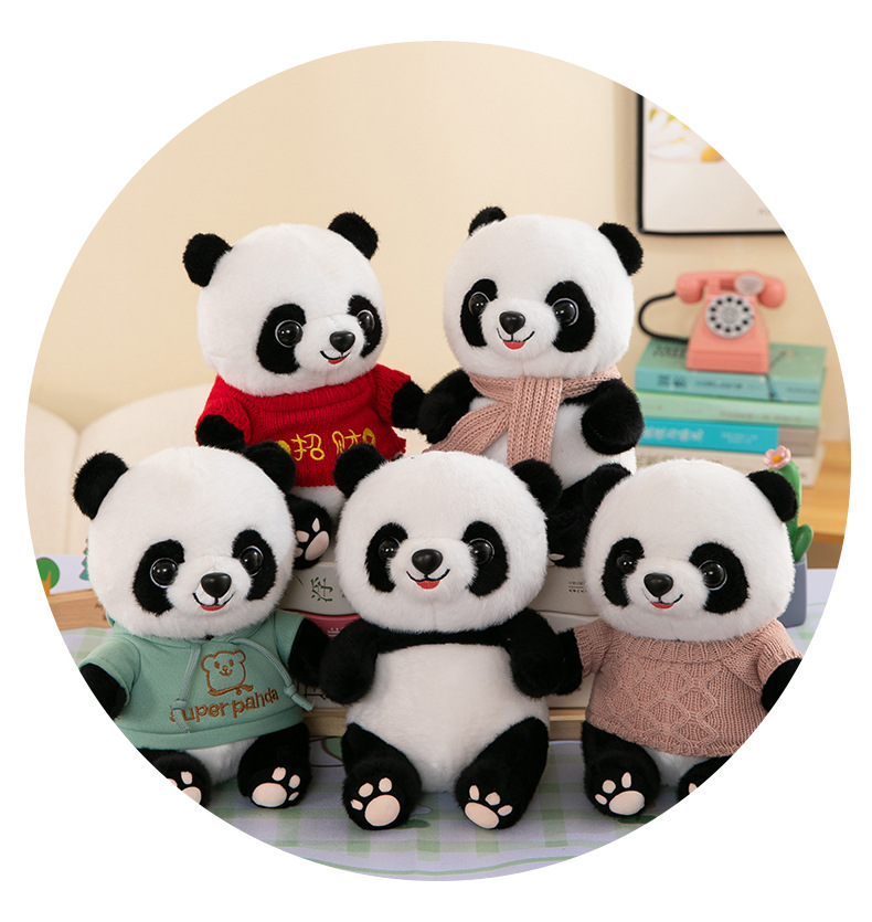 드레싱 팬더 인형 인형 거대한 팬더 봉제 장난감 청두 선물 회사 인쇄 가능한 로고
