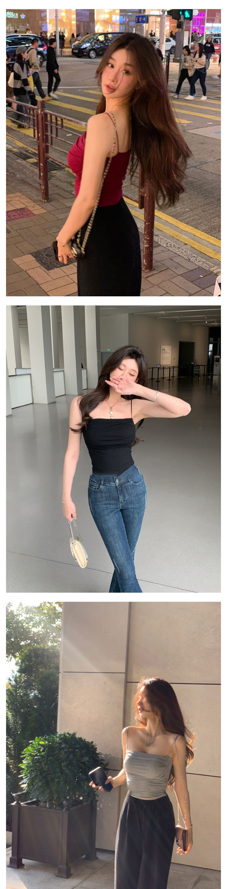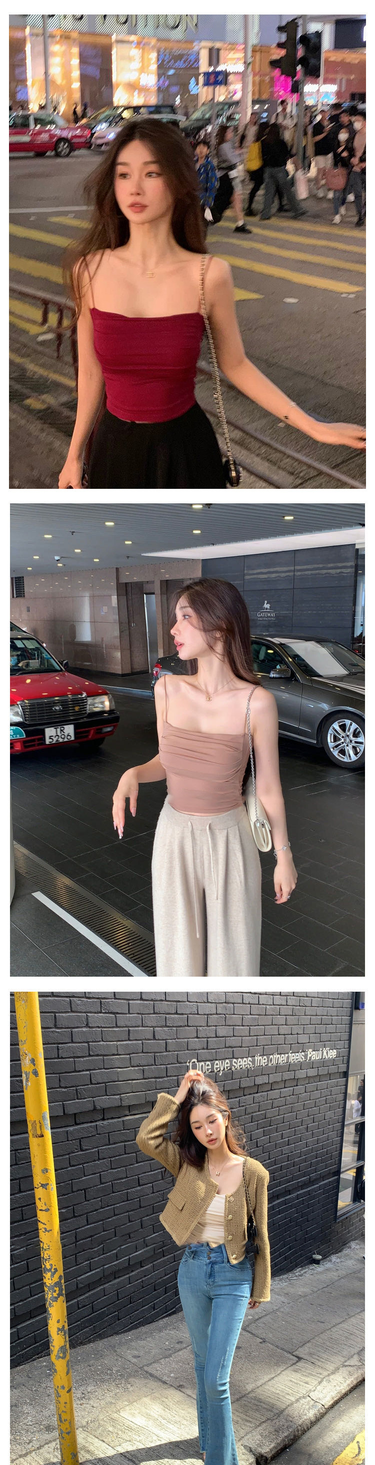 순수한 욕망 뜨거운 소녀 Pleated 디자인 뷰티 백 슬링 민소매 슬림-올매치 착용없는 브래지어와 여성을위한 최고의 조끼스토어 가기