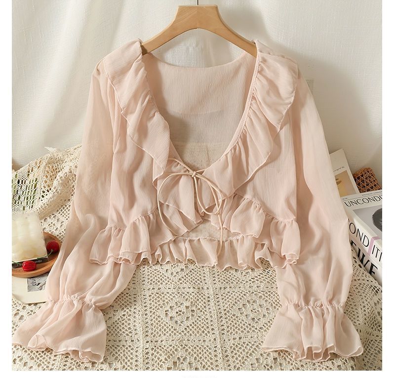 슈퍼 페어리 쉬폰 선스크린 의류 여성 아우터웨어 여름 슬링 스커트 작은 목도리 블라우스 여성 라이트급 통기성 카디건