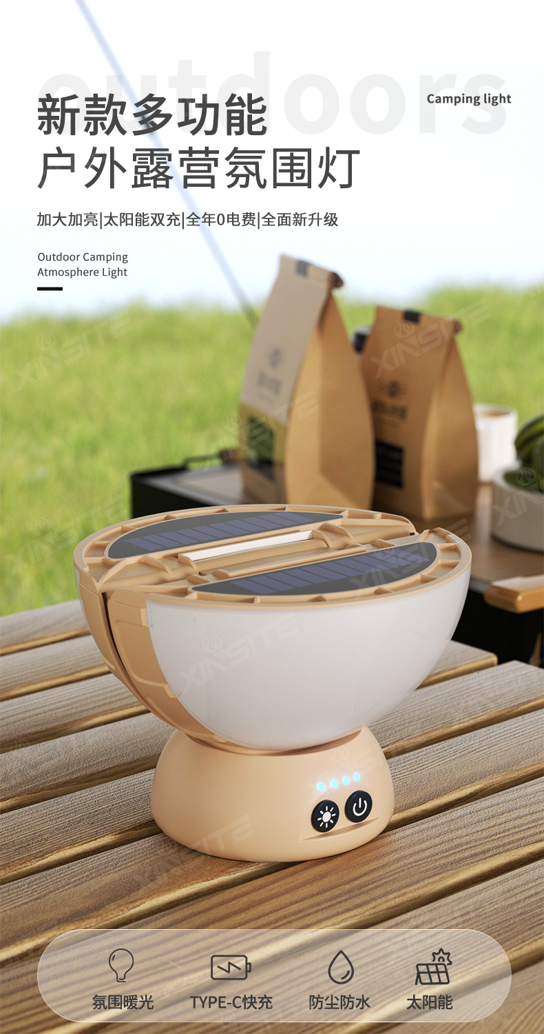 국경 간 새로운 야외 버섯 캠핑 램프 태양열 충전 다기능 작업 램프 안뜰 분위기 램프 휴대용 램프