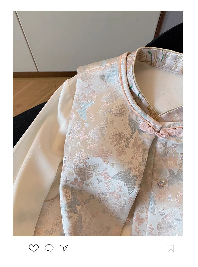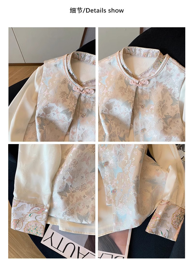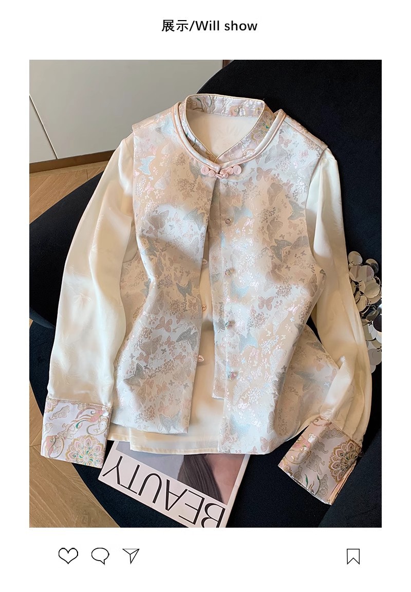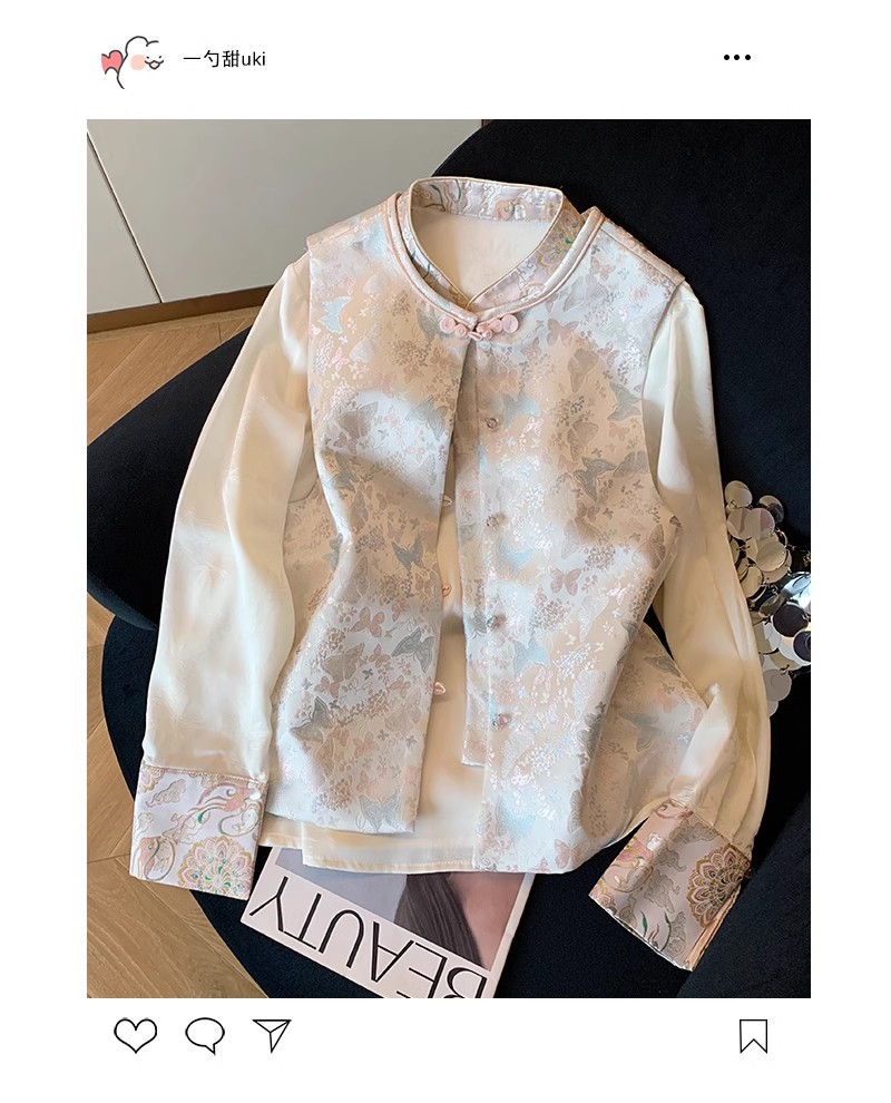 새로운 중국 스타일 셔츠와 조끼 투피스 세트 여성용 당나라 정장 버튼 조끼 레이어드 헤비듀티 중국 스타일 자카드 조끼스토어 가기