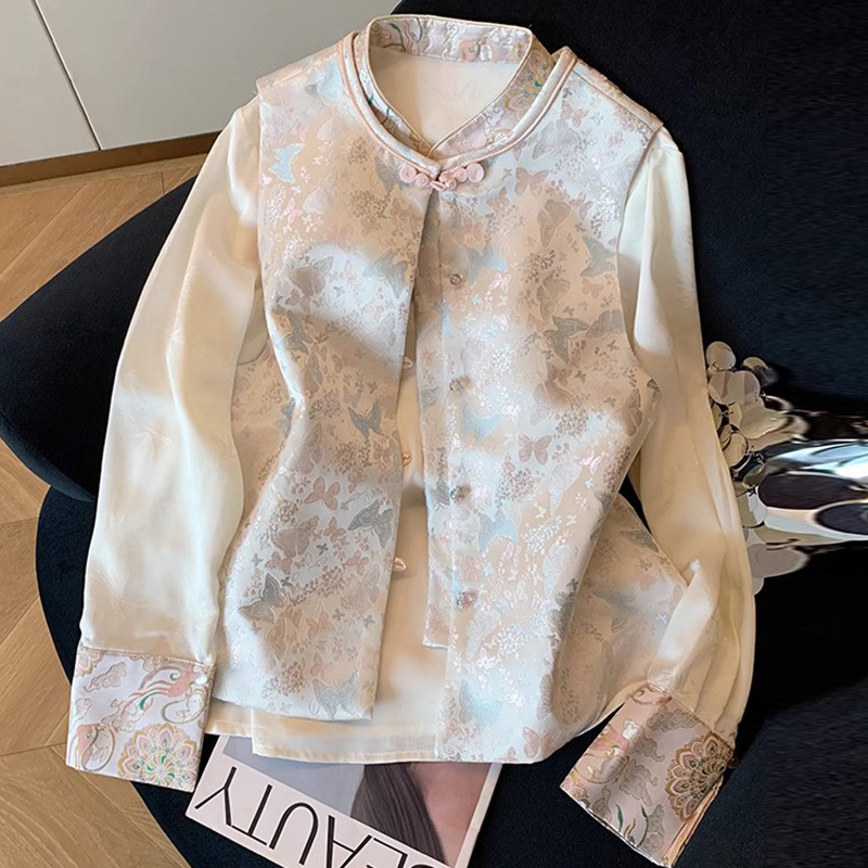 새로운 중국 스타일 셔츠와 조끼 투피스 세트 여성용 당나라 정장 버튼 조끼 레이어드 헤비듀티 중국 스타일 자카드 조끼