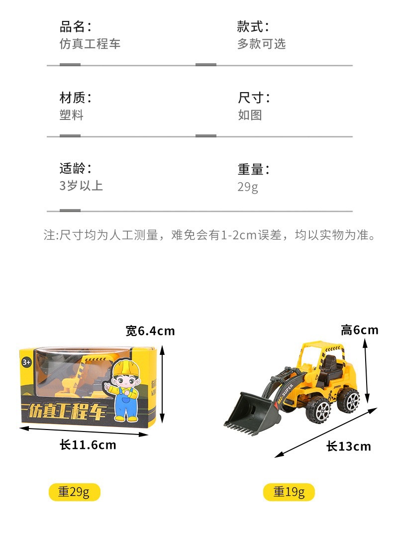 박스형 풀백 자동차 시뮬레이션 엔지니어링 차량 장난감 굴삭기 대형 트럭 모델 장난감 학교 공유 작은 선물스토어 가기