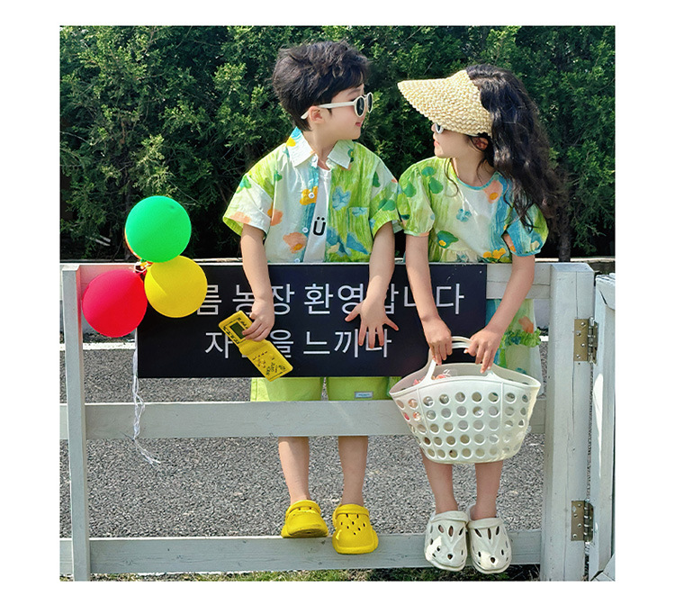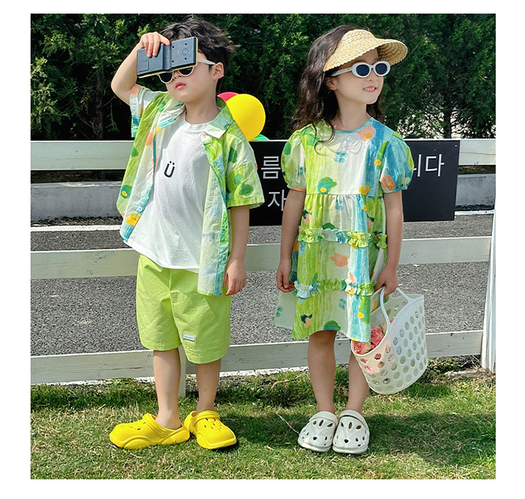 소년 반팔 셔츠 정장 여름 소녀 드레스 아기 옷 휴가 스타일 어린이 해변 의류 투피스 세트스토어 가기
