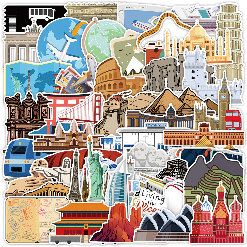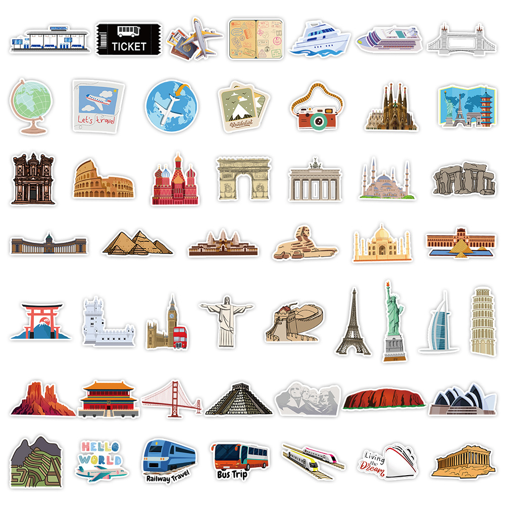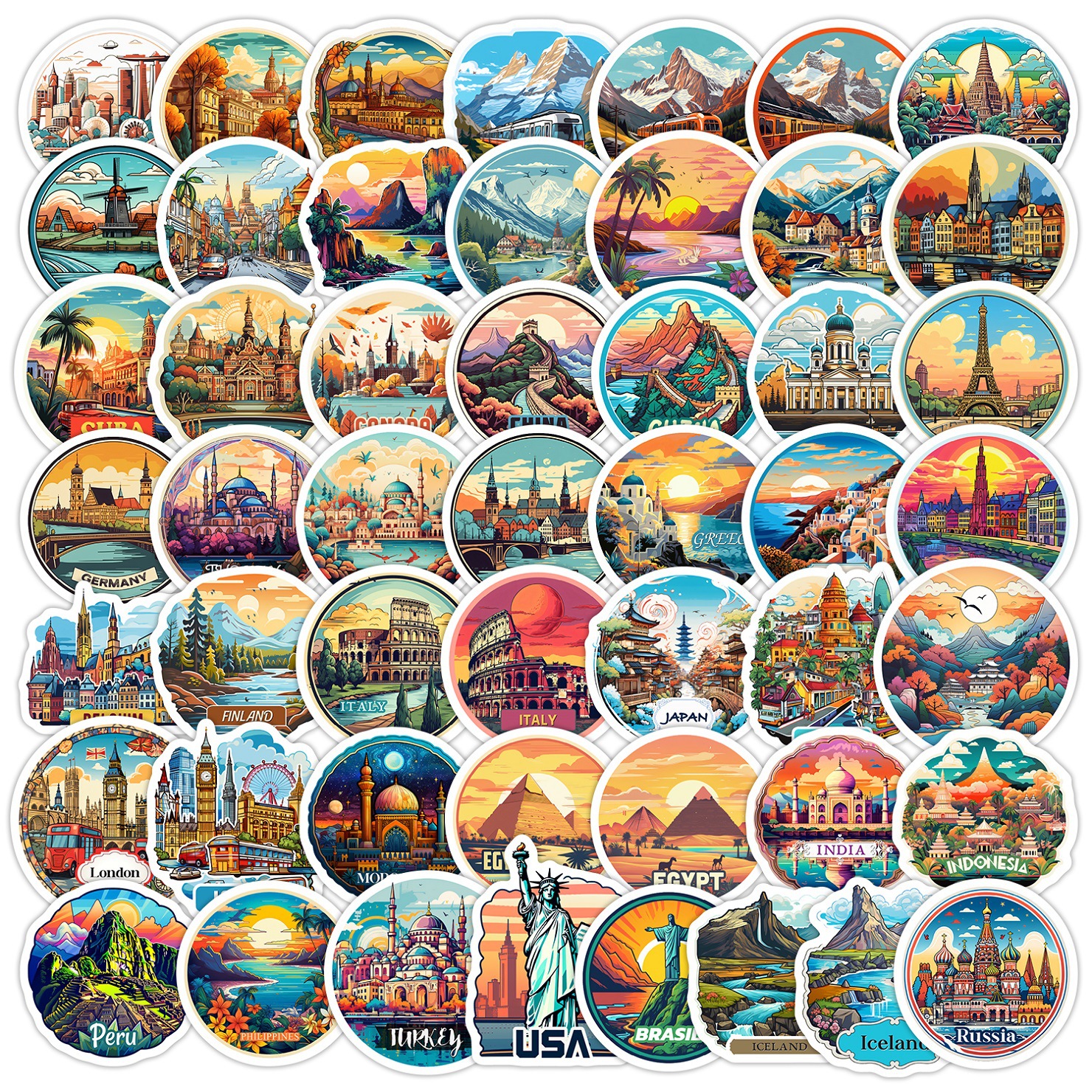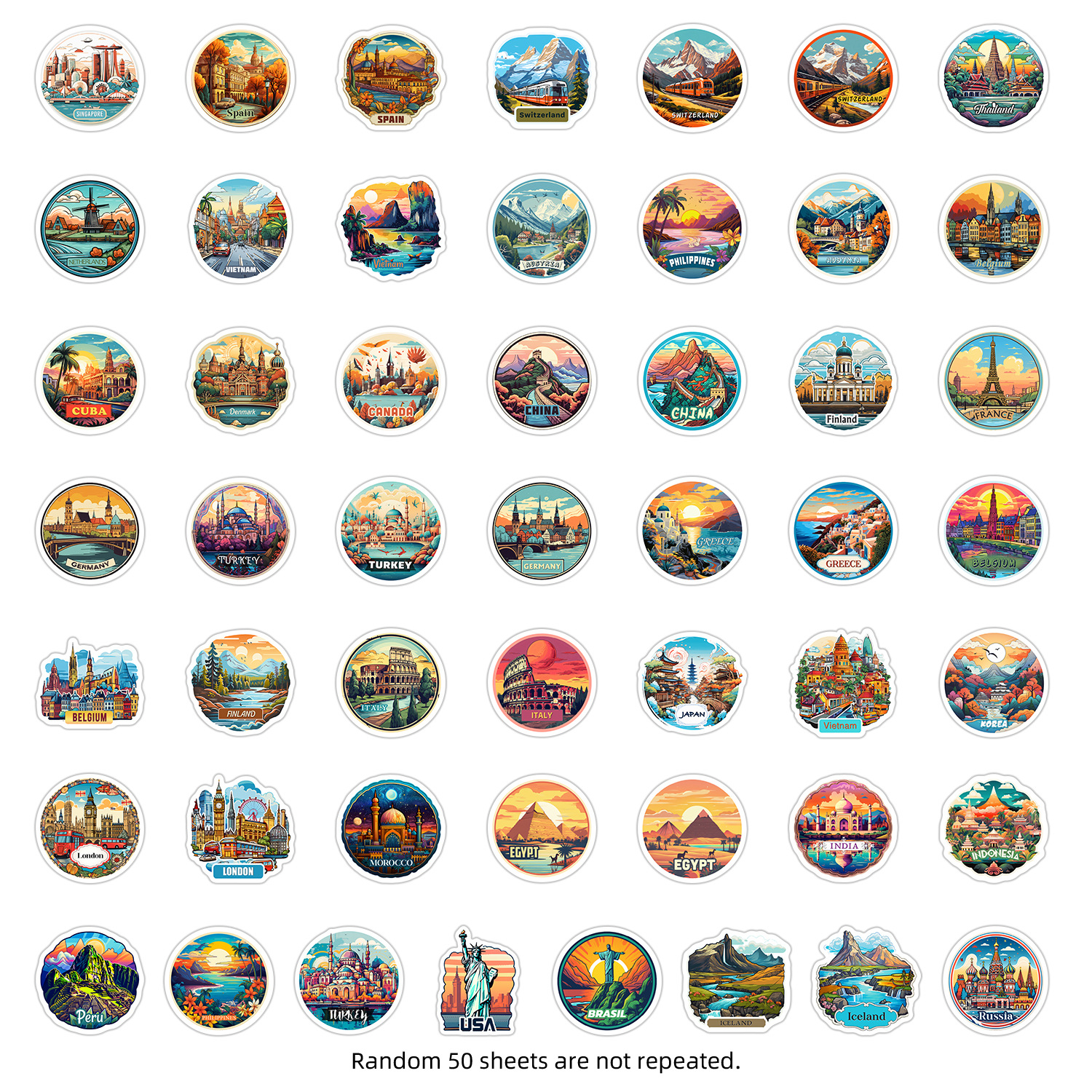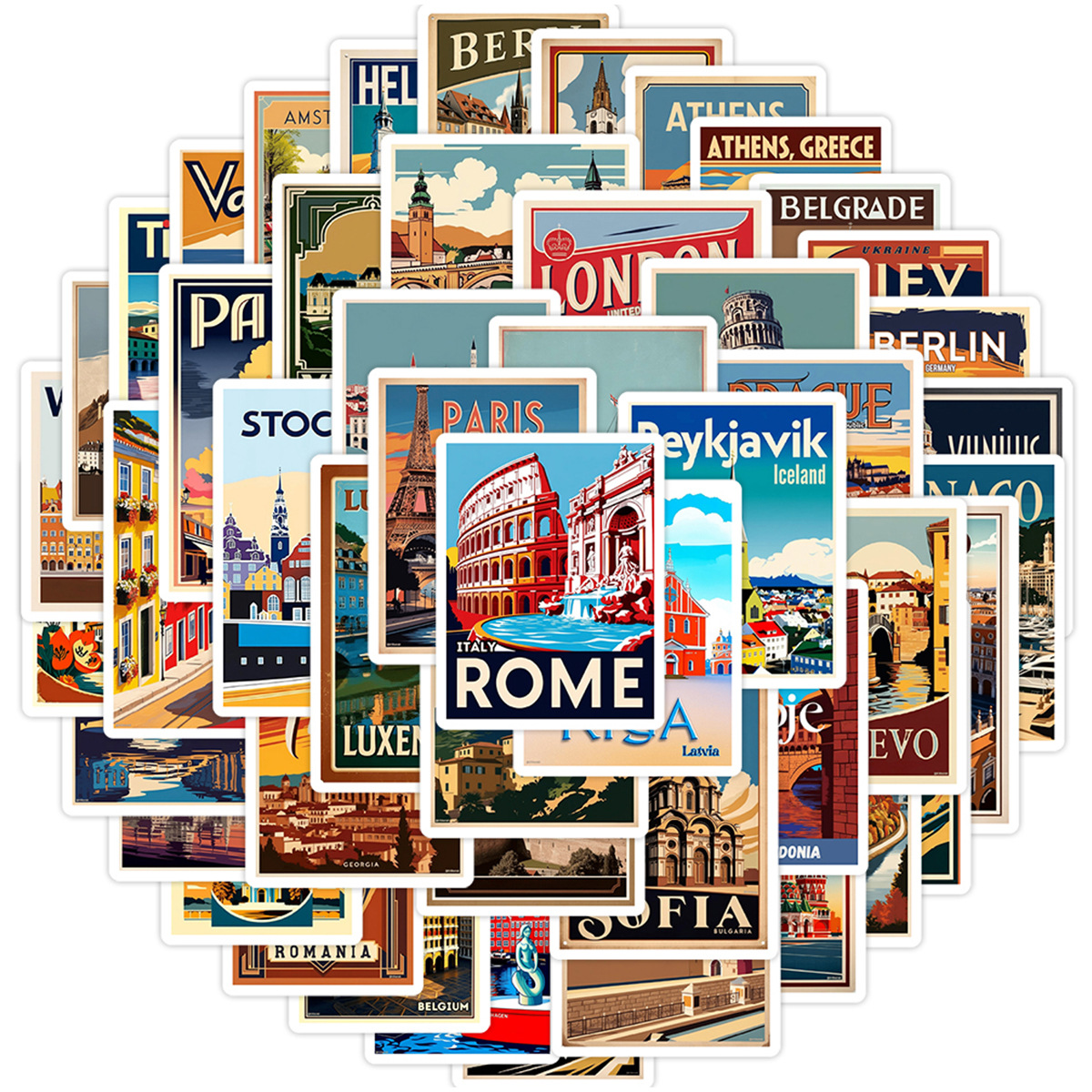 50 유럽 여행 낙서 스티커 물 컵 컴퓨터 휴대 전화 방수 장식 스티커 창조적 인 여행 스티커 도매