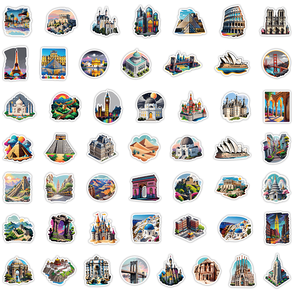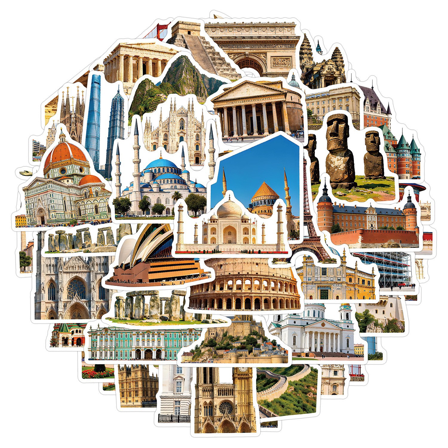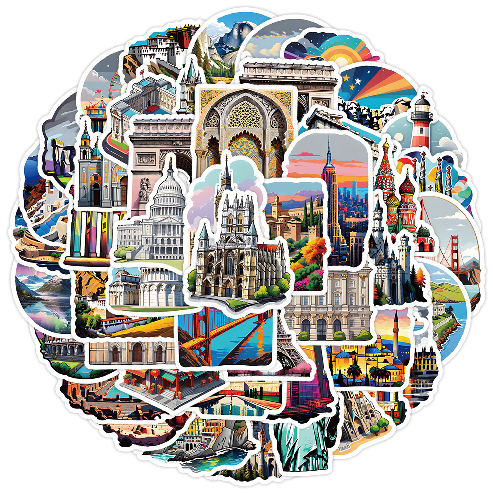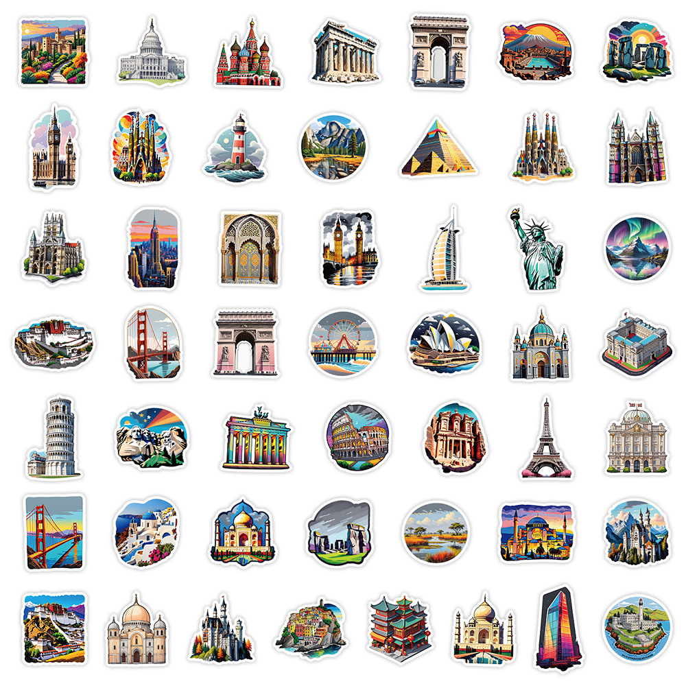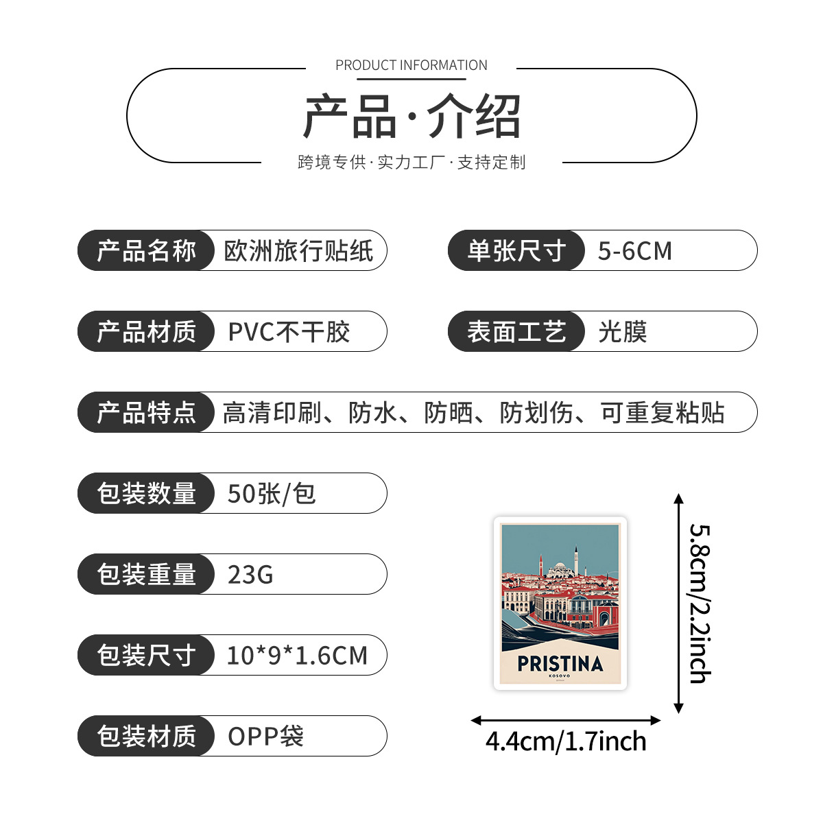 50 유럽 여행 낙서 스티커 물 컵 컴퓨터 휴대 전화 방수 장식 스티커 창조적 인 여행 스티커 도매