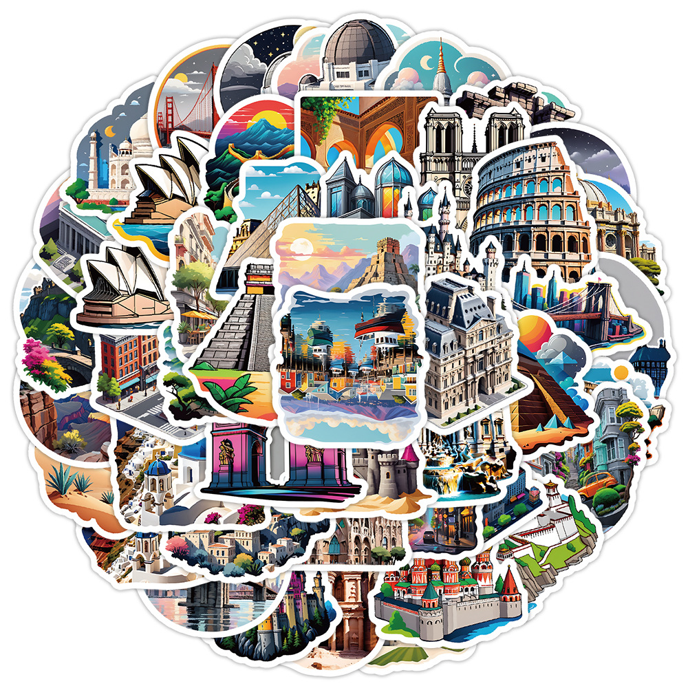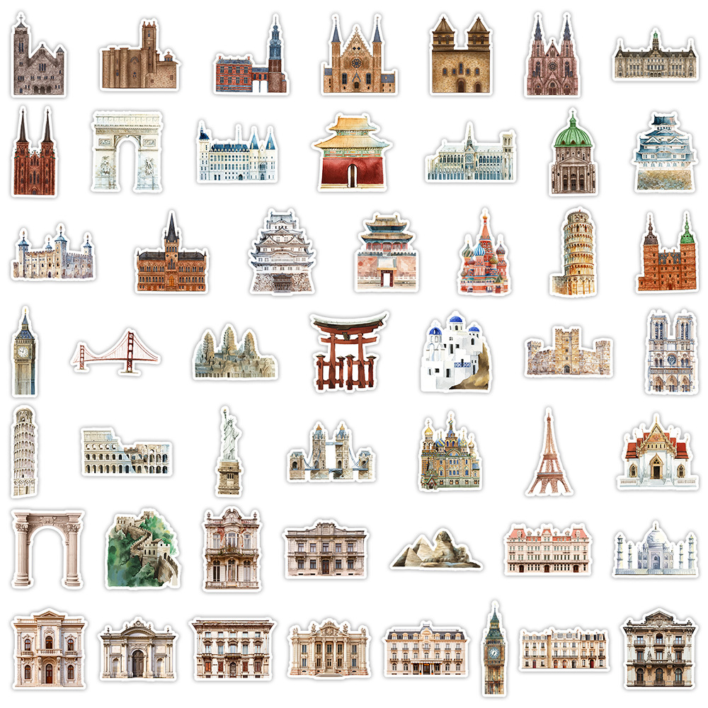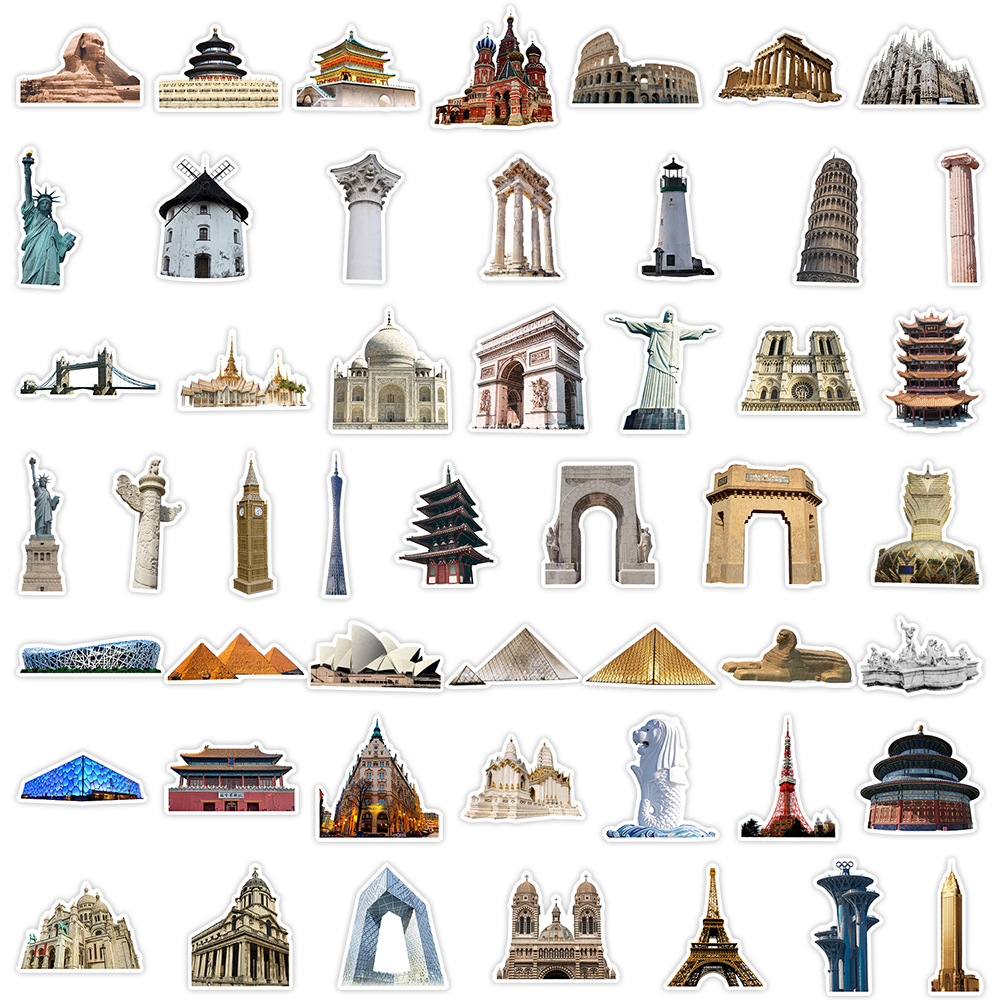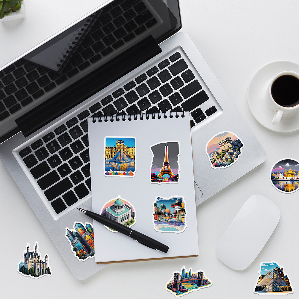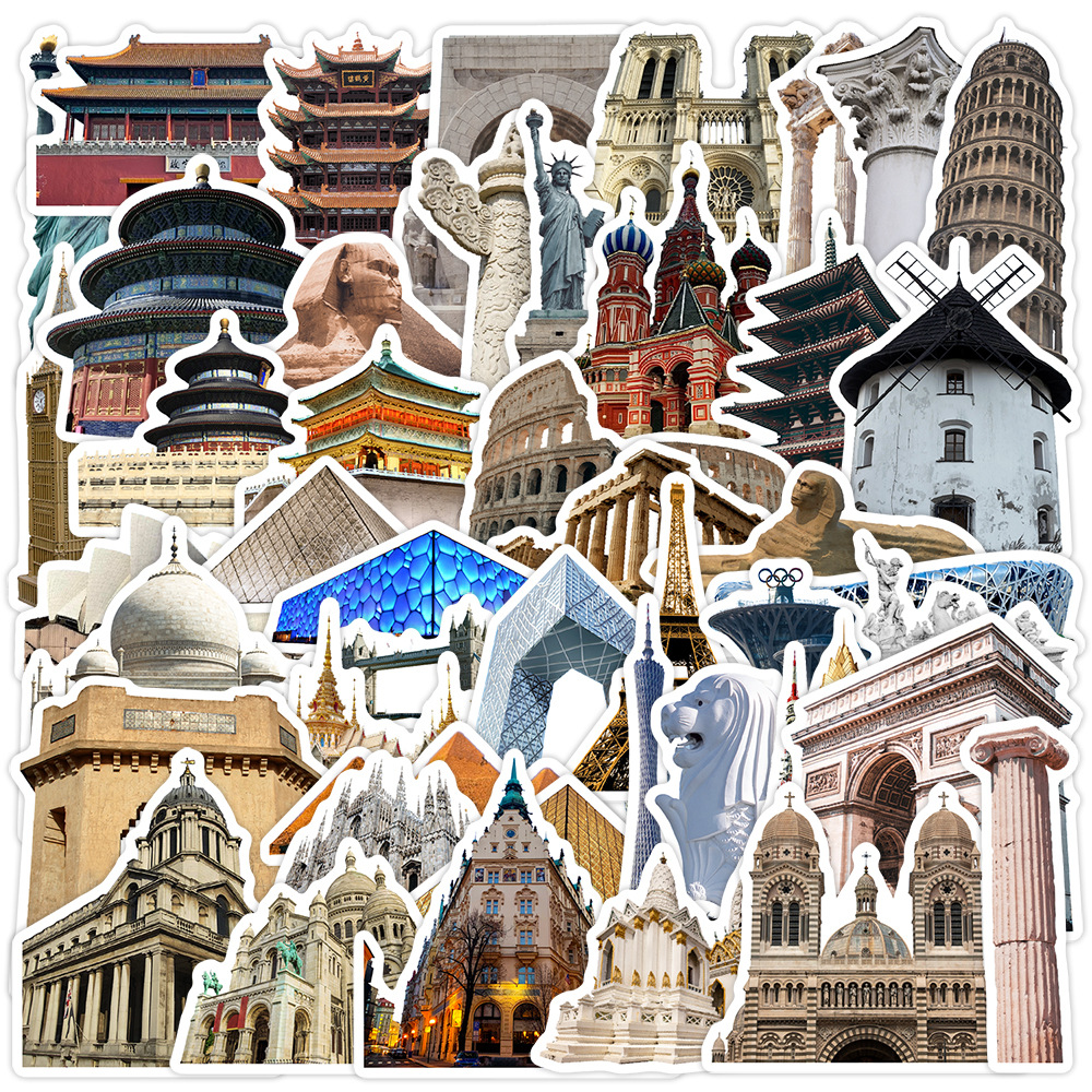 50 유럽 여행 낙서 스티커 물 컵 컴퓨터 휴대 전화 방수 장식 스티커 창조적 인 여행 스티커 도매