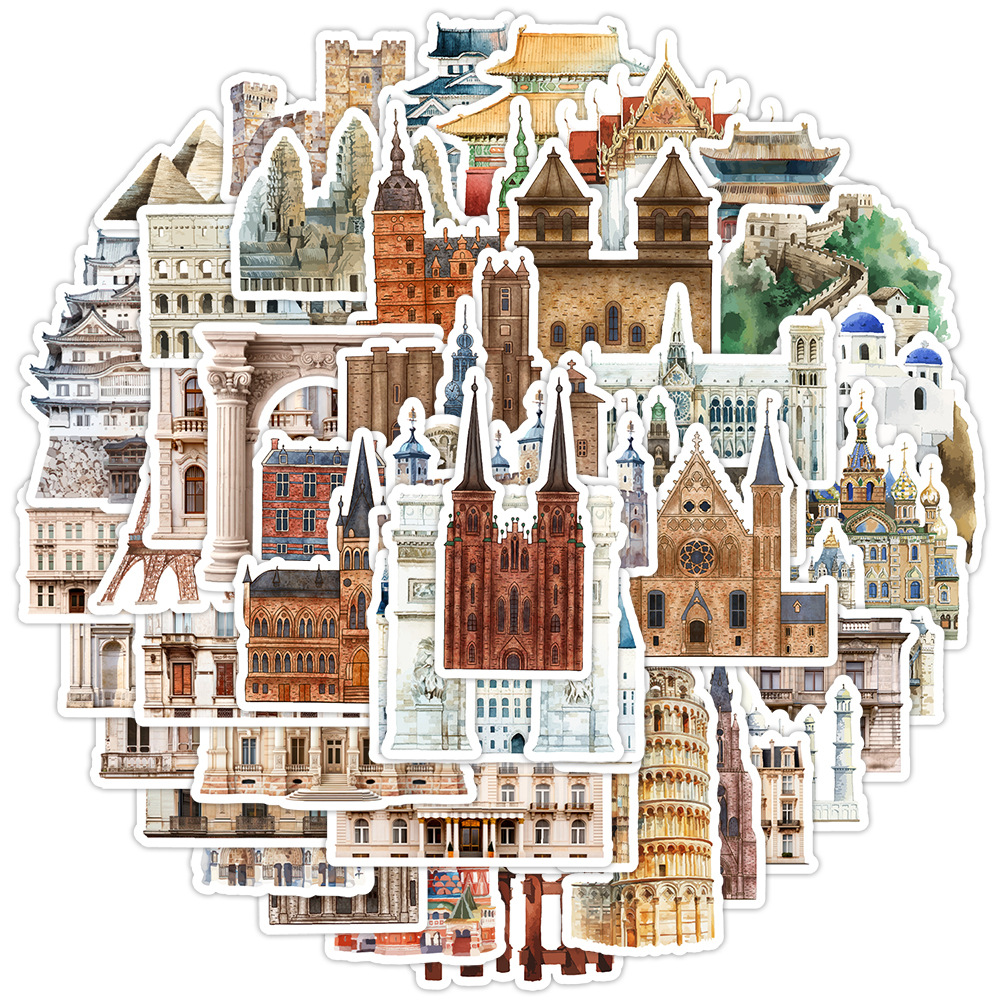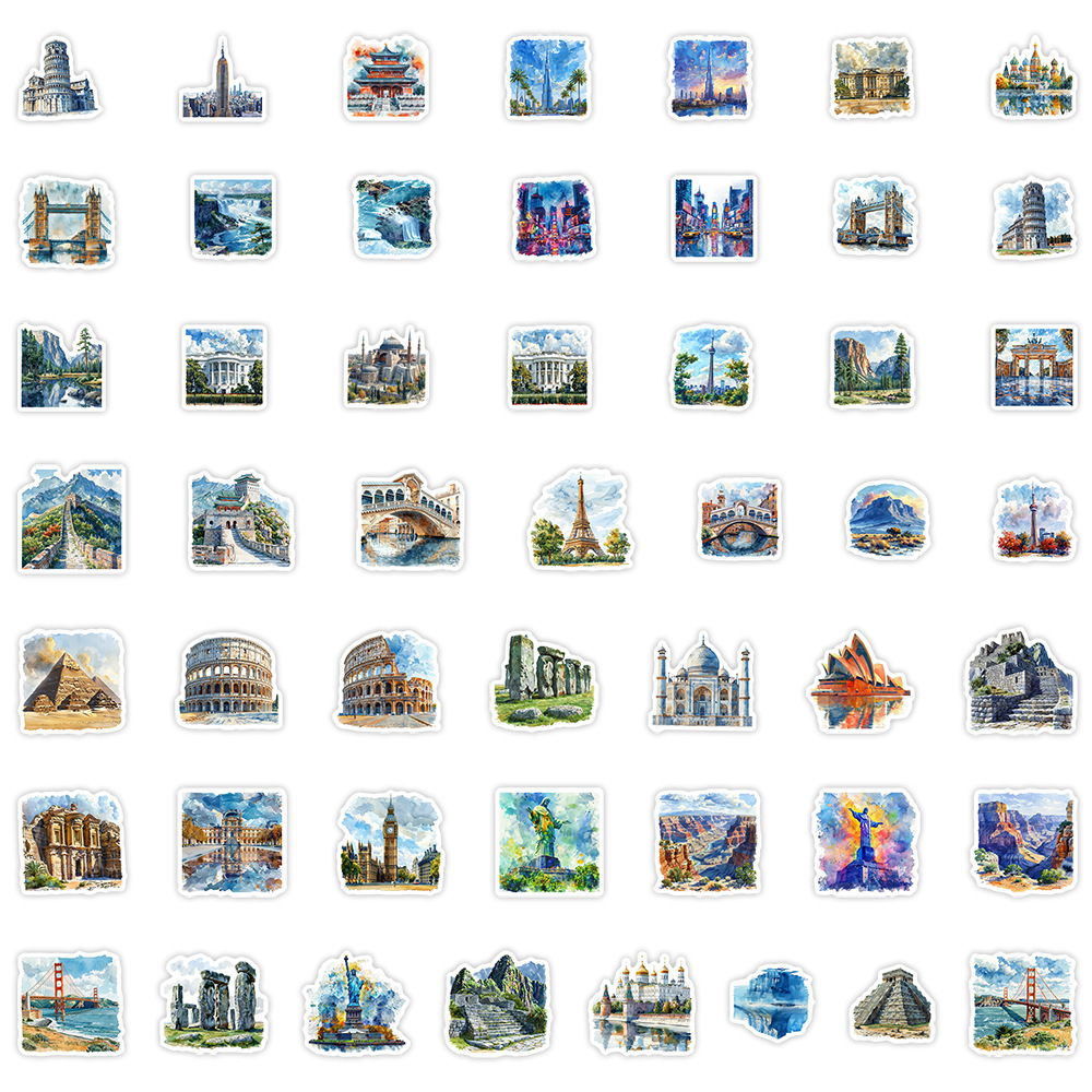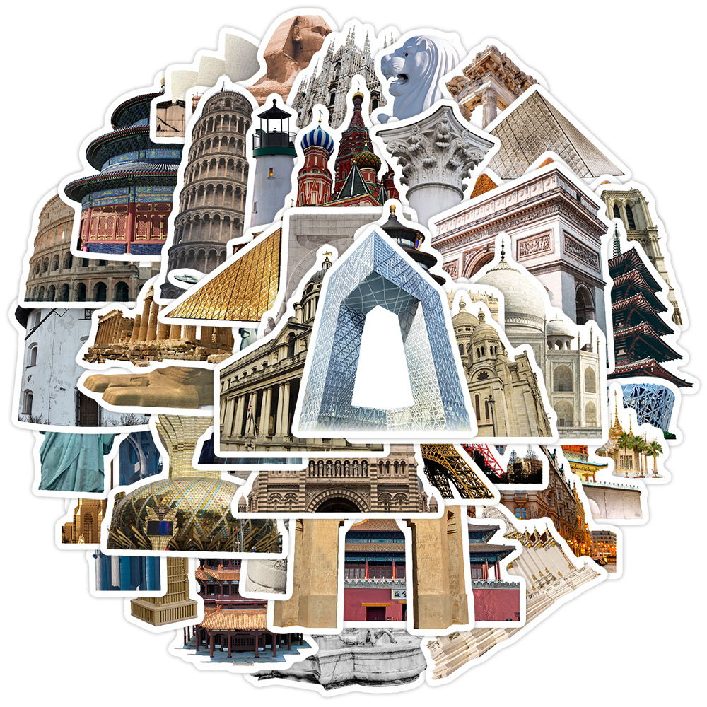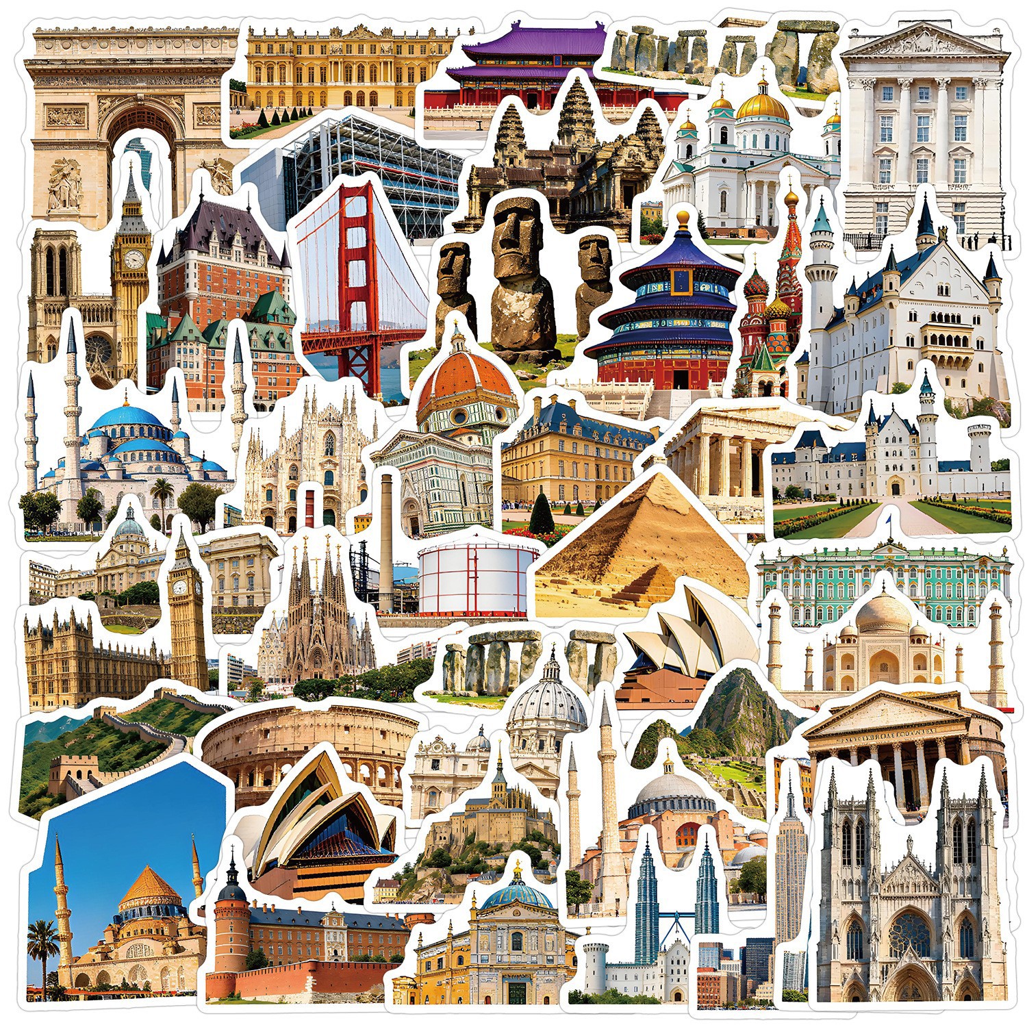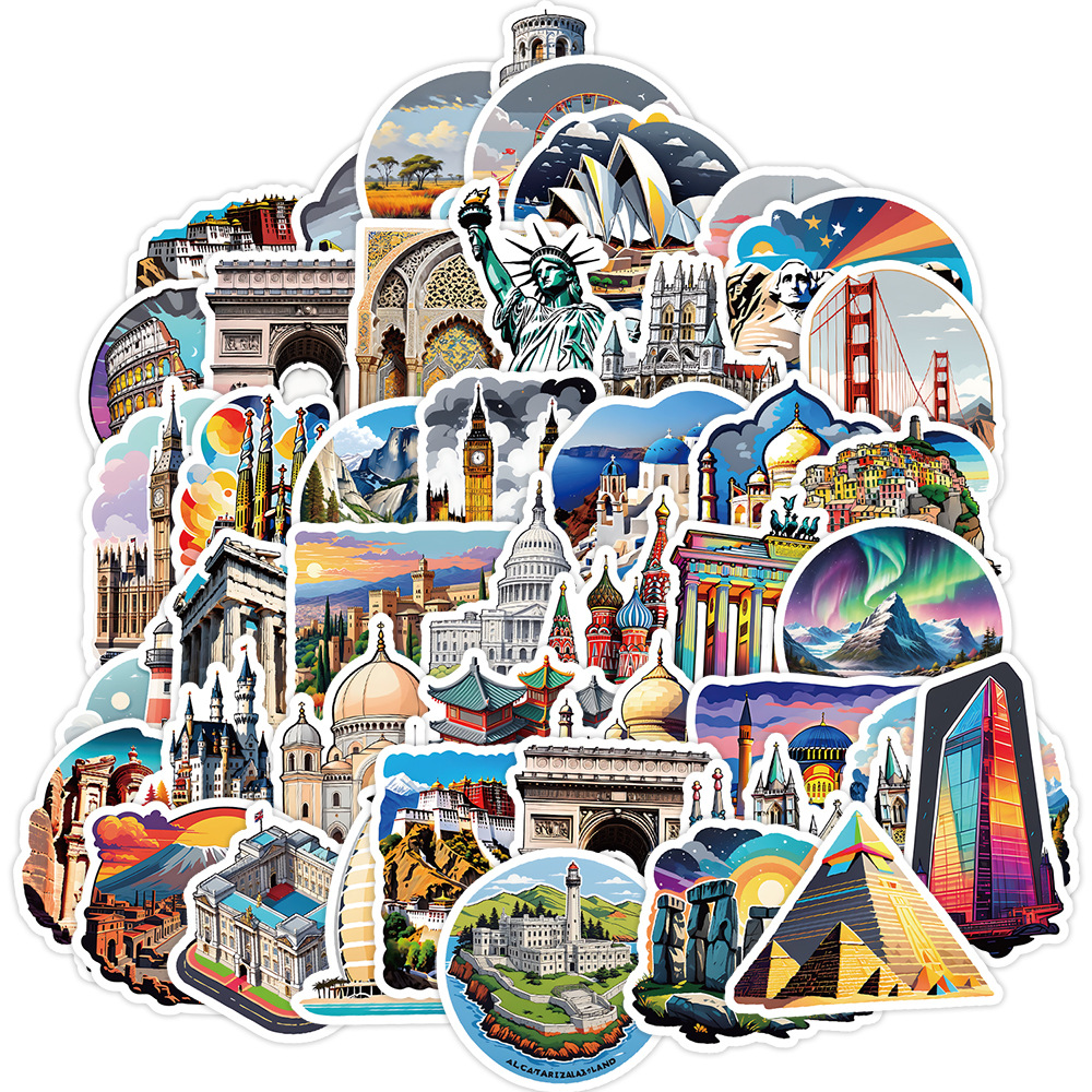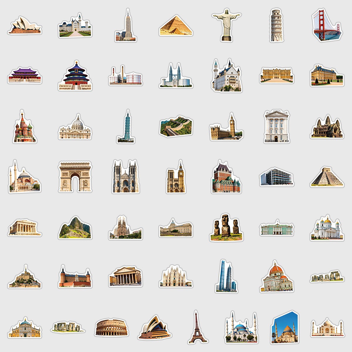 50 유럽 여행 낙서 스티커 물 컵 컴퓨터 휴대 전화 방수 장식 스티커 창조적 인 여행 스티커 도매