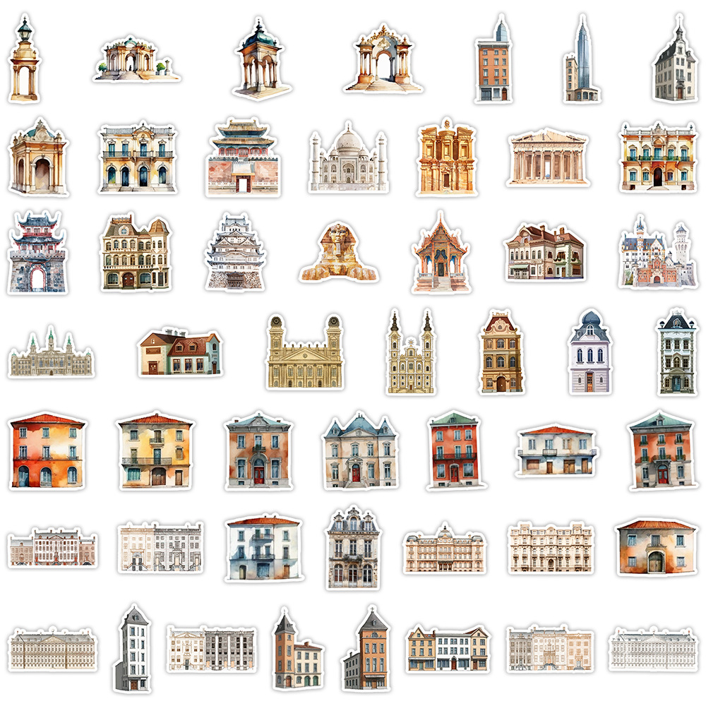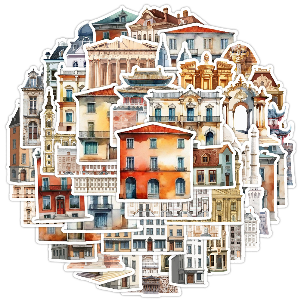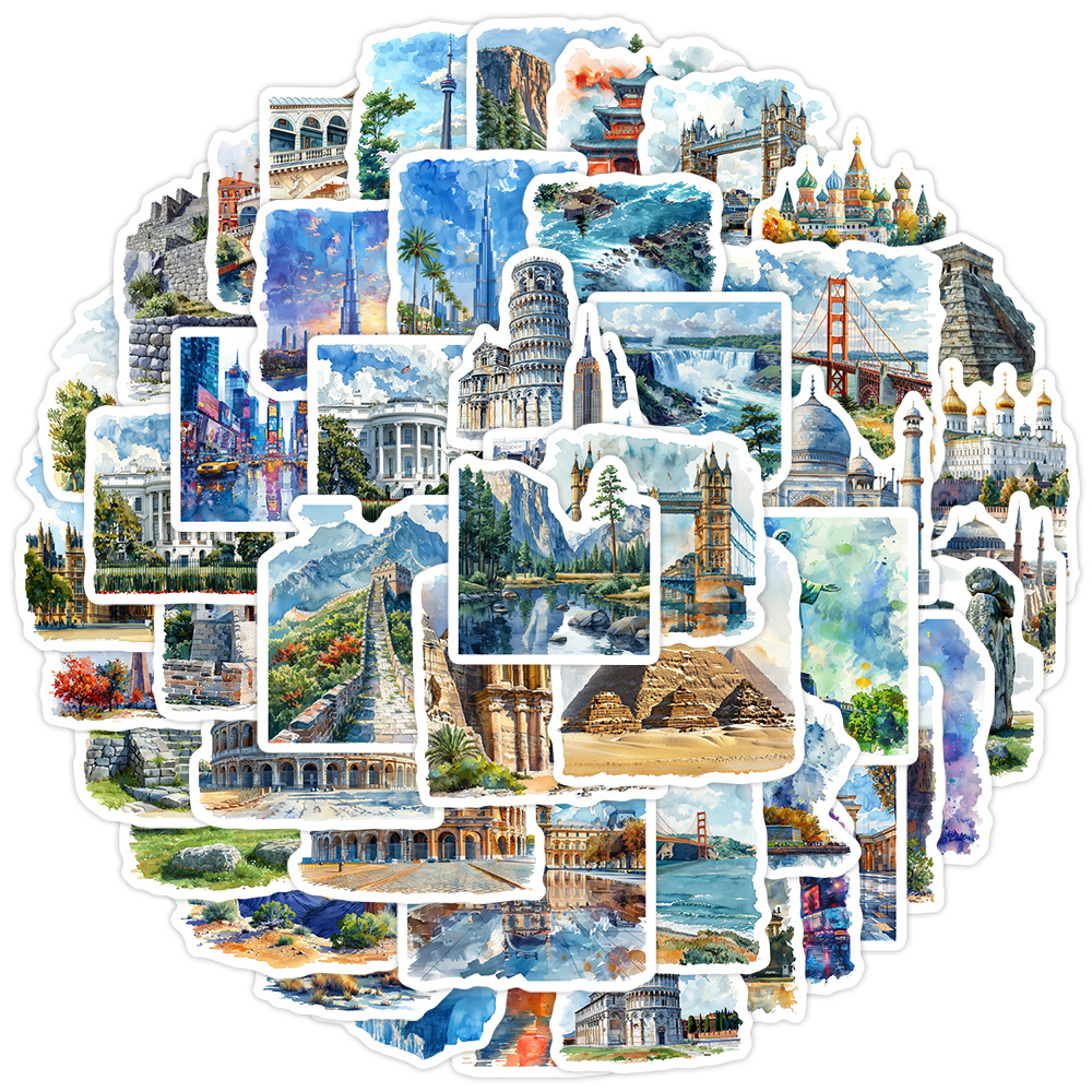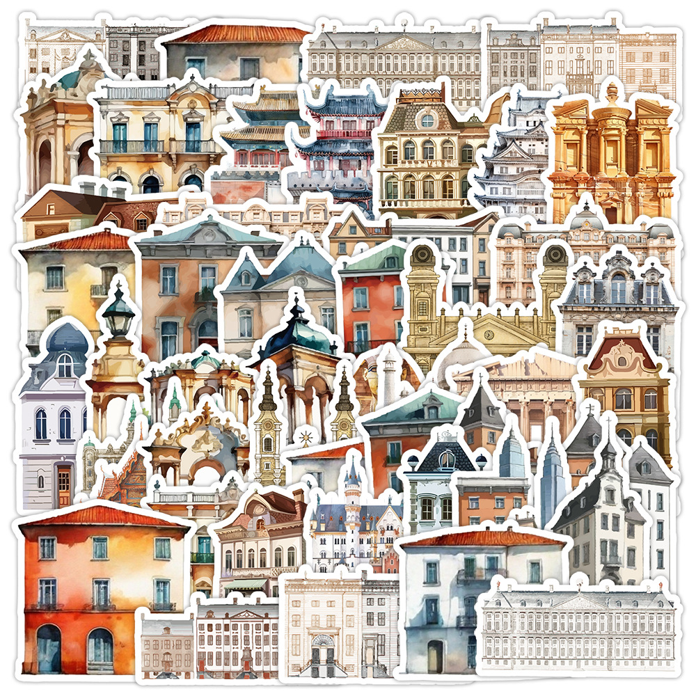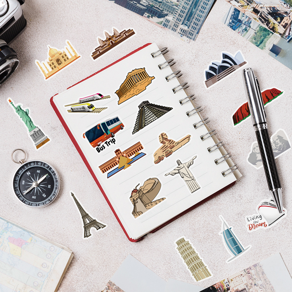 50 유럽 여행 낙서 스티커 물 컵 컴퓨터 휴대 전화 방수 장식 스티커 창조적 인 여행 스티커 도매