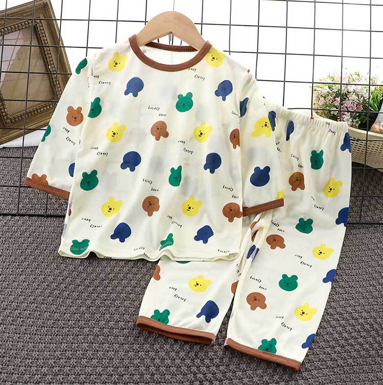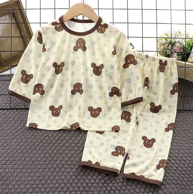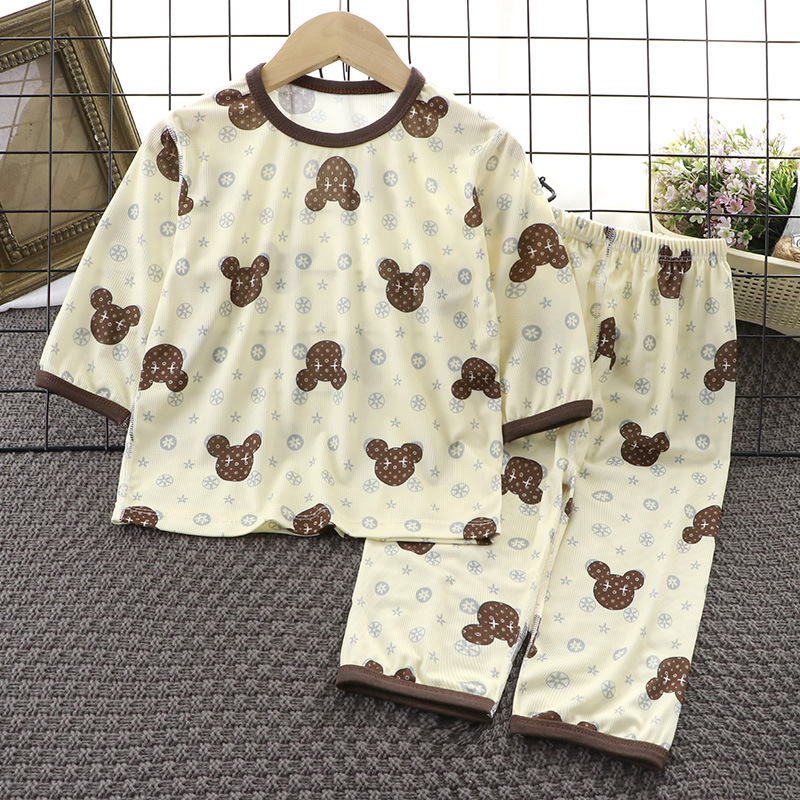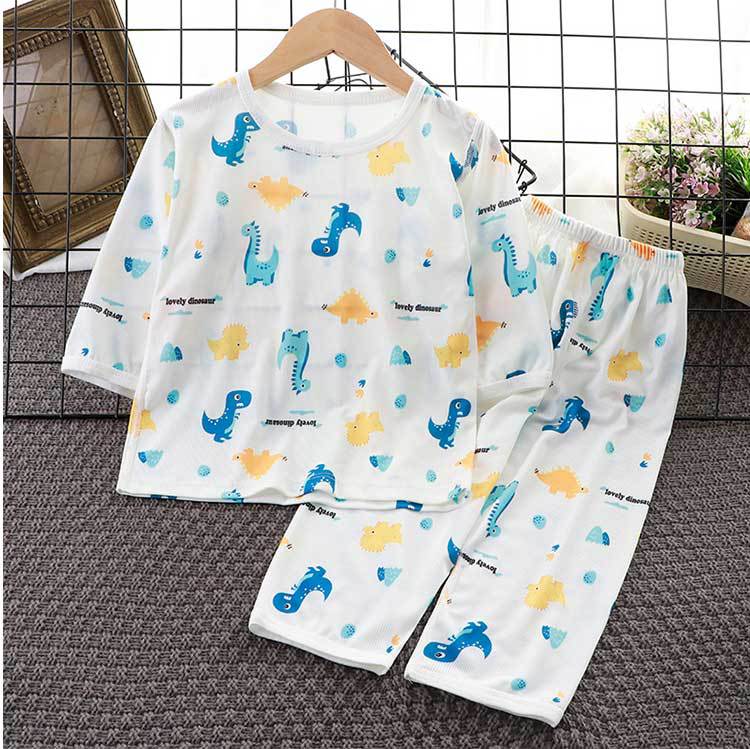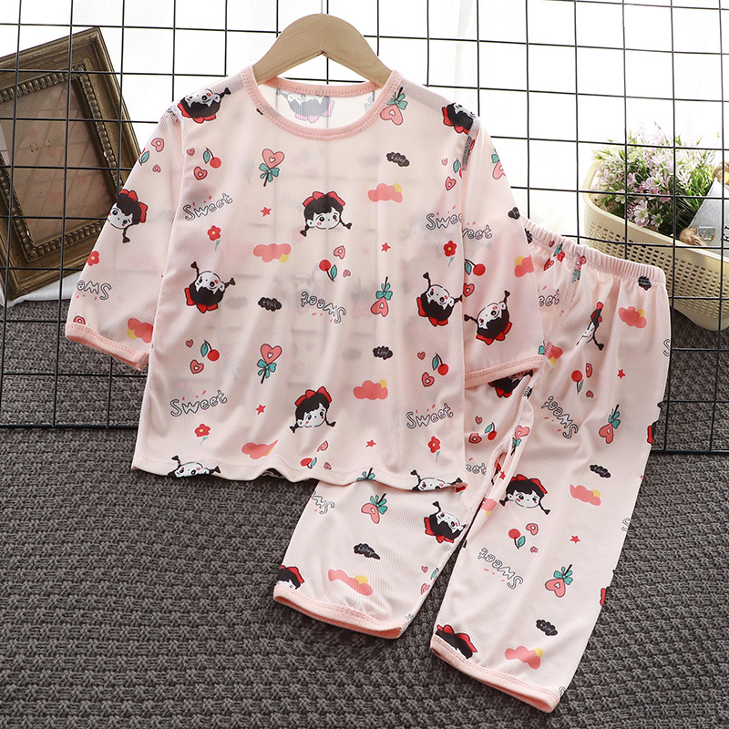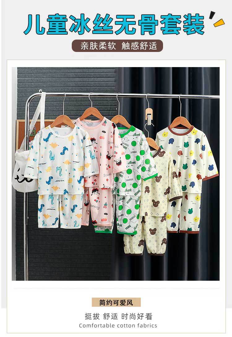 아동복 세트 2025 여름 소년과 소녀 얇은 뼈없는 7 점 잠옷 잠옷 캐주얼 정장