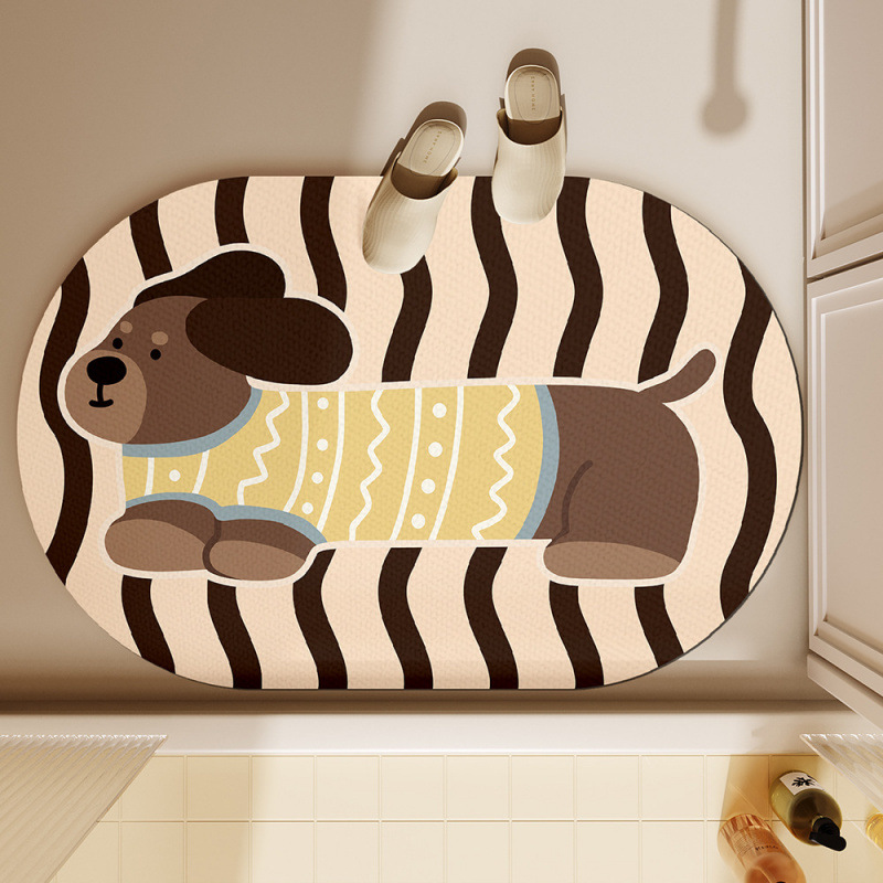 만화 닥스훈트 강아지 규조토 진흙 욕실 화장실 입구 미끄럼 방지 흡수성 먼지 방지 속건성 발 패드 도어 매트