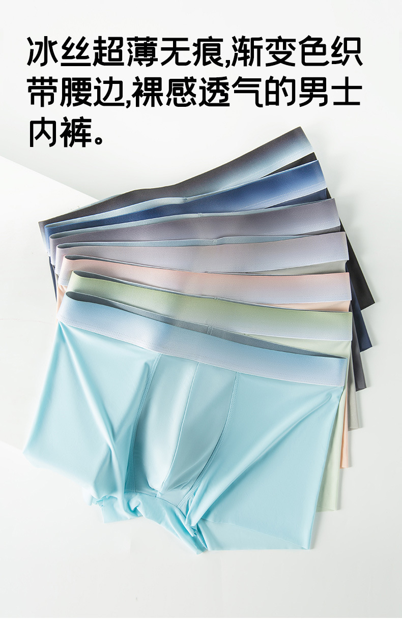 그라디언트 벨트 남자 아이스 실크 4 코너 속옷 2025 새로운 도착 No-마크 여름 얇은 복서 10a 항균 Crotch스토어 가기