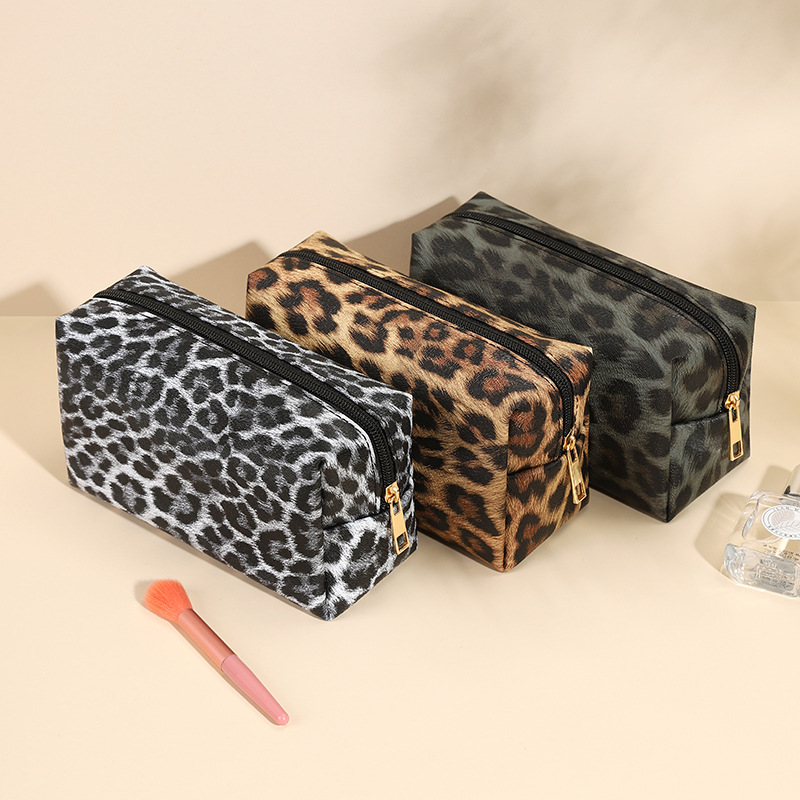 국경 간 새로운 PU 화장품 가방 여성 레오파드 인쇄 저장 가방 대용량 학생 화장품 가방 휴대용 클러치 백스토어 가기