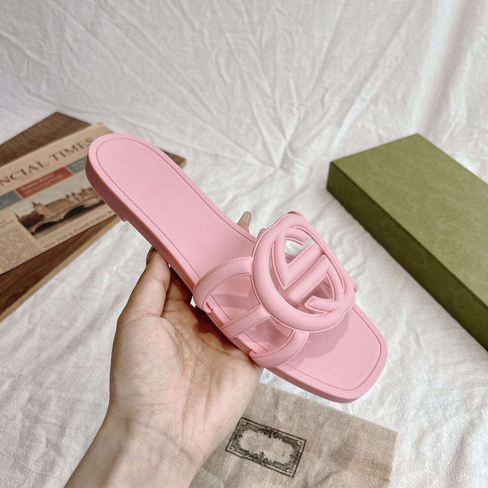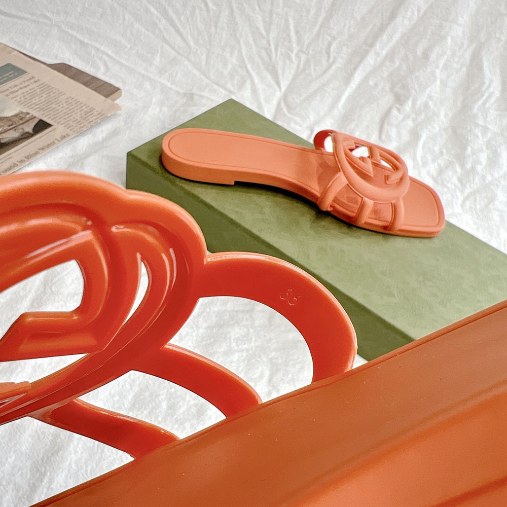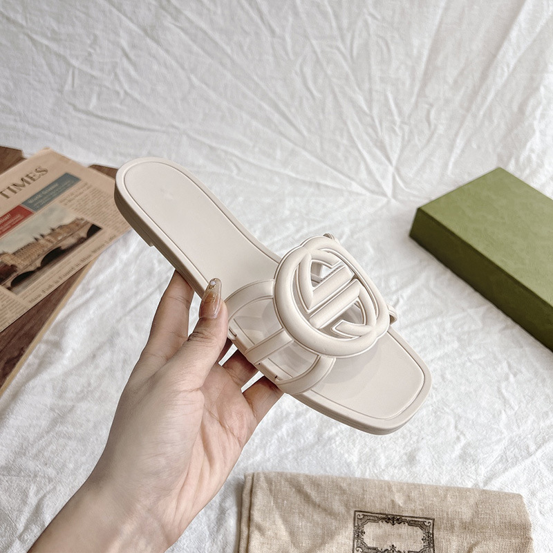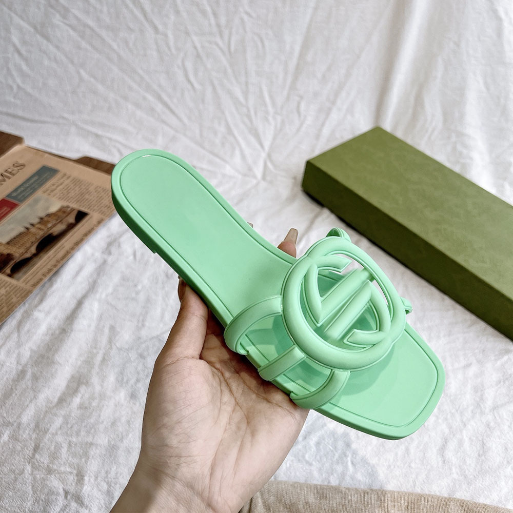 2025 폭발성 더블 G 버클 플랫 슬리퍼 올 매치 미끄럼 방지 여성용 샌들 비치 젤리 슈즈스토어 가기
