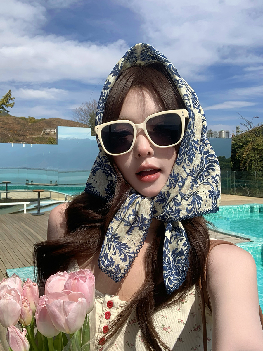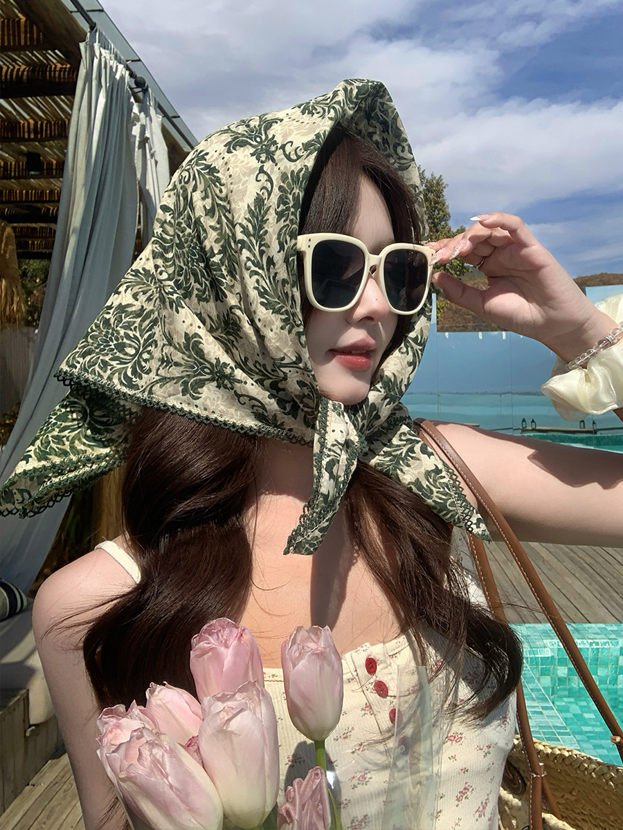 2025 새로운 복고풍 민족 스타일 코튼 거즈 실크 스카프 여성 봄과 여름 해변 사진 작은 사각형 스카프 야외 태양 보호 스카프
