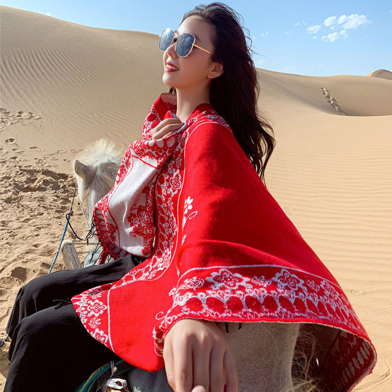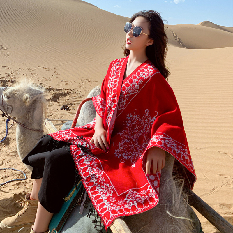 트렌디하고 패셔너블한 복고풍 민족 스타일 망토, 캐주얼하고 편안하며 통기성이 뛰어나고 개인화된 따뜻한 스카프, 대형 망토, 여행용 숄스토어 가기