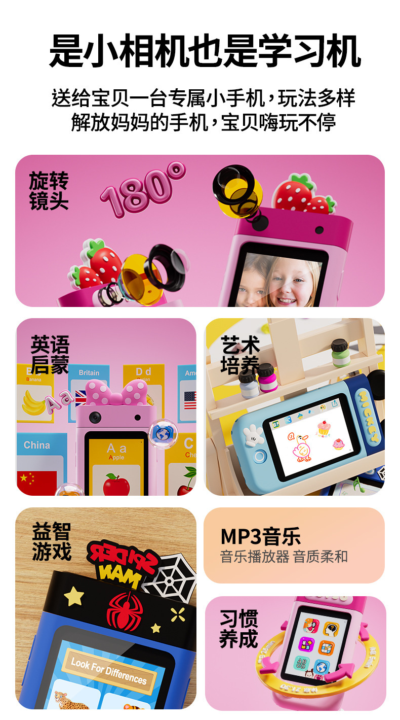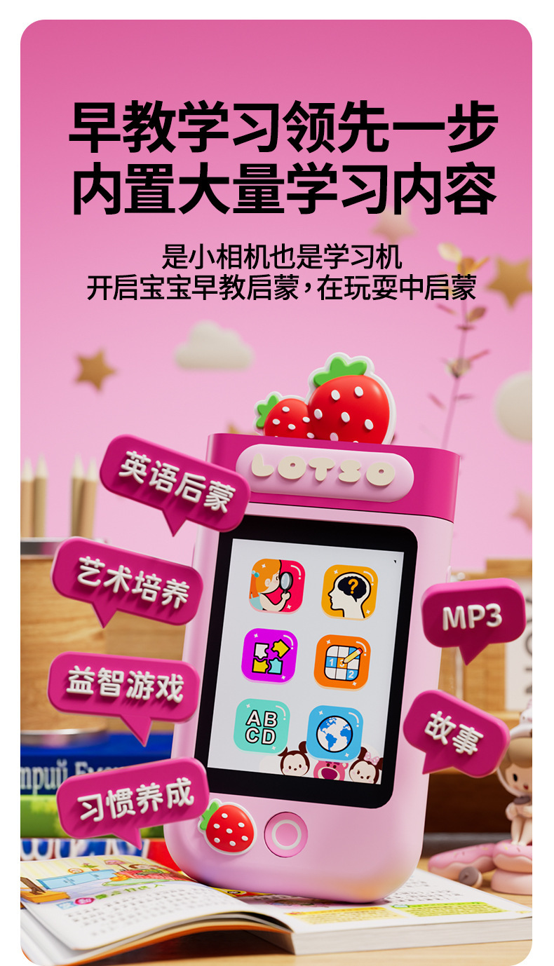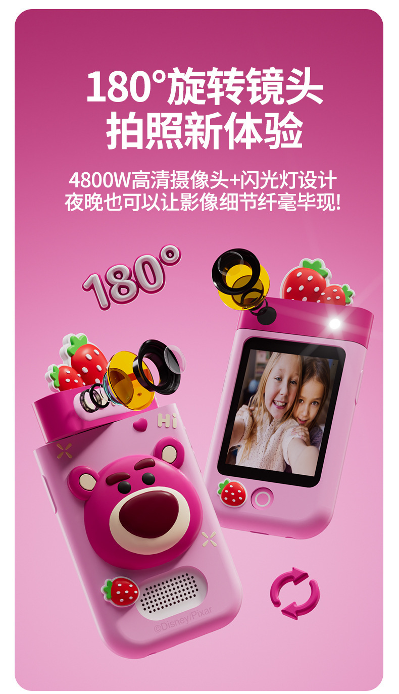 IP Strawberry Bear 인기 스마트 어린이 카메라는 사진과 비디오를 찍을 수 있습니다. 고화질 듀얼 카메라 터치 휴대폰 장난감 선물스토어 가기