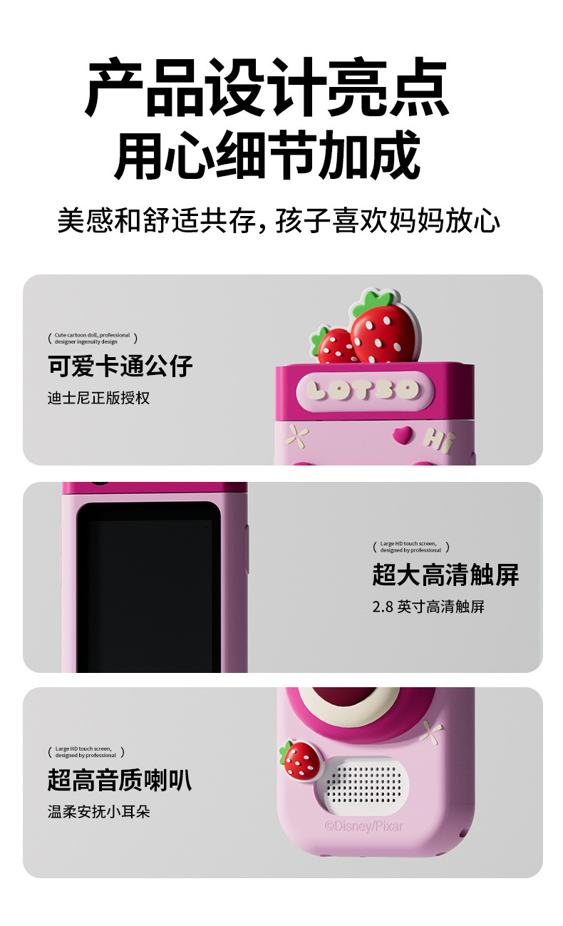 IP Strawberry Bear 인기 스마트 어린이 카메라는 사진과 비디오를 찍을 수 있습니다. 고화질 듀얼 카메라 터치 휴대폰 장난감 선물