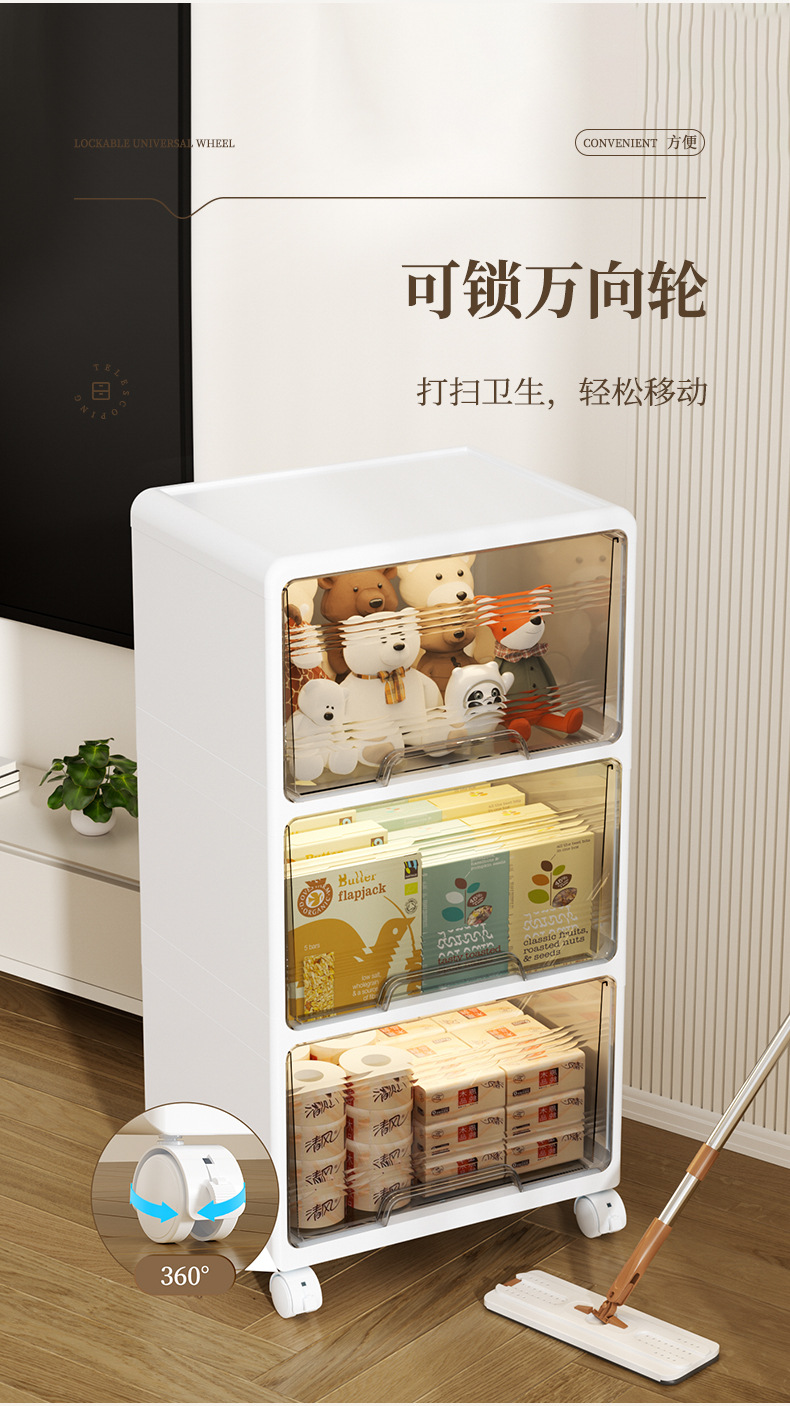 설치가 필요 없는 롤러가 있는 일체형 대용량 바닥형 수납 캐비닛 침실 주방 수납을 위한 이동식 수납 캐비닛스토어 가기