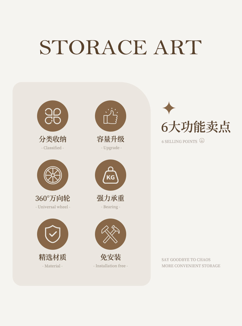 설치가 필요 없는 롤러가 있는 일체형 대용량 바닥형 수납 캐비닛 침실 주방 수납을 위한 이동식 수납 캐비닛