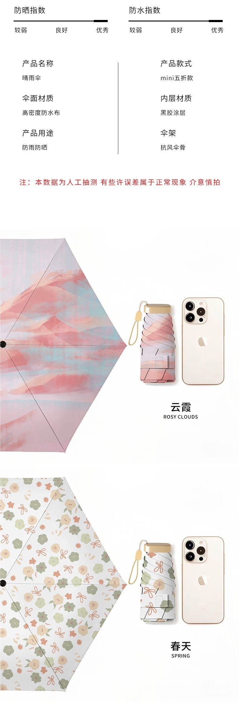 캡슐 태양 우산 태양 보호 UV 차양 우산 이중 용도 미니 접이식 초경량 50% off 소형 및 휴대용