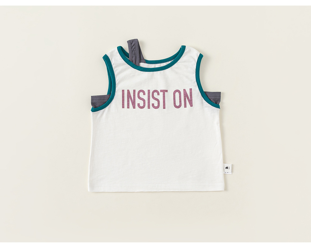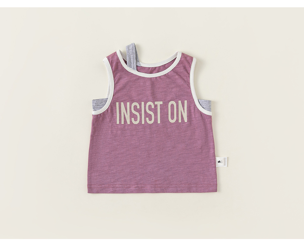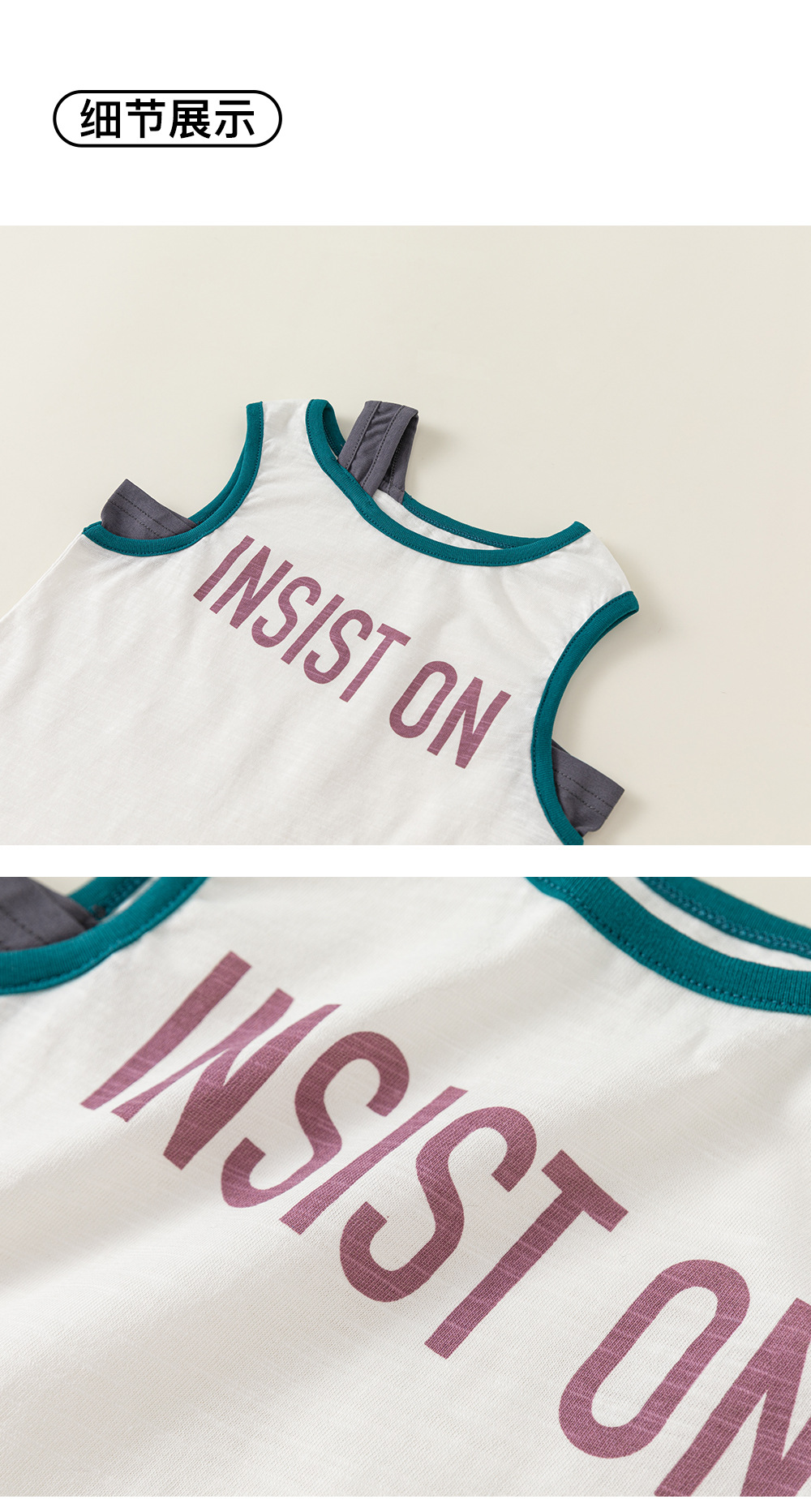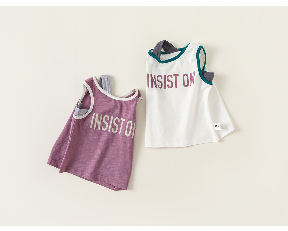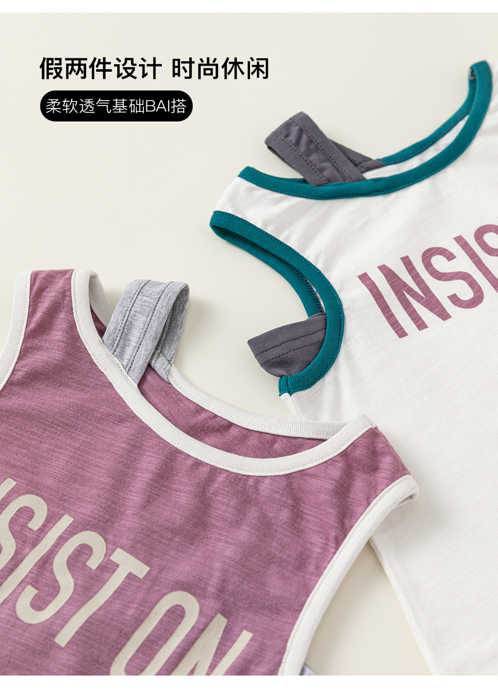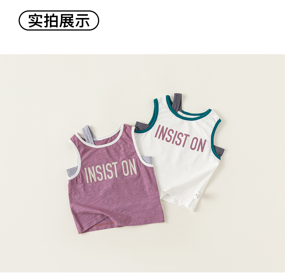 유바오 아동복 어린이 민소매 티셔츠 소녀 가짜 투피스 콘트라스트 컬러 조끼 캐주얼 여름 원피스 걸스 풀오버 탑